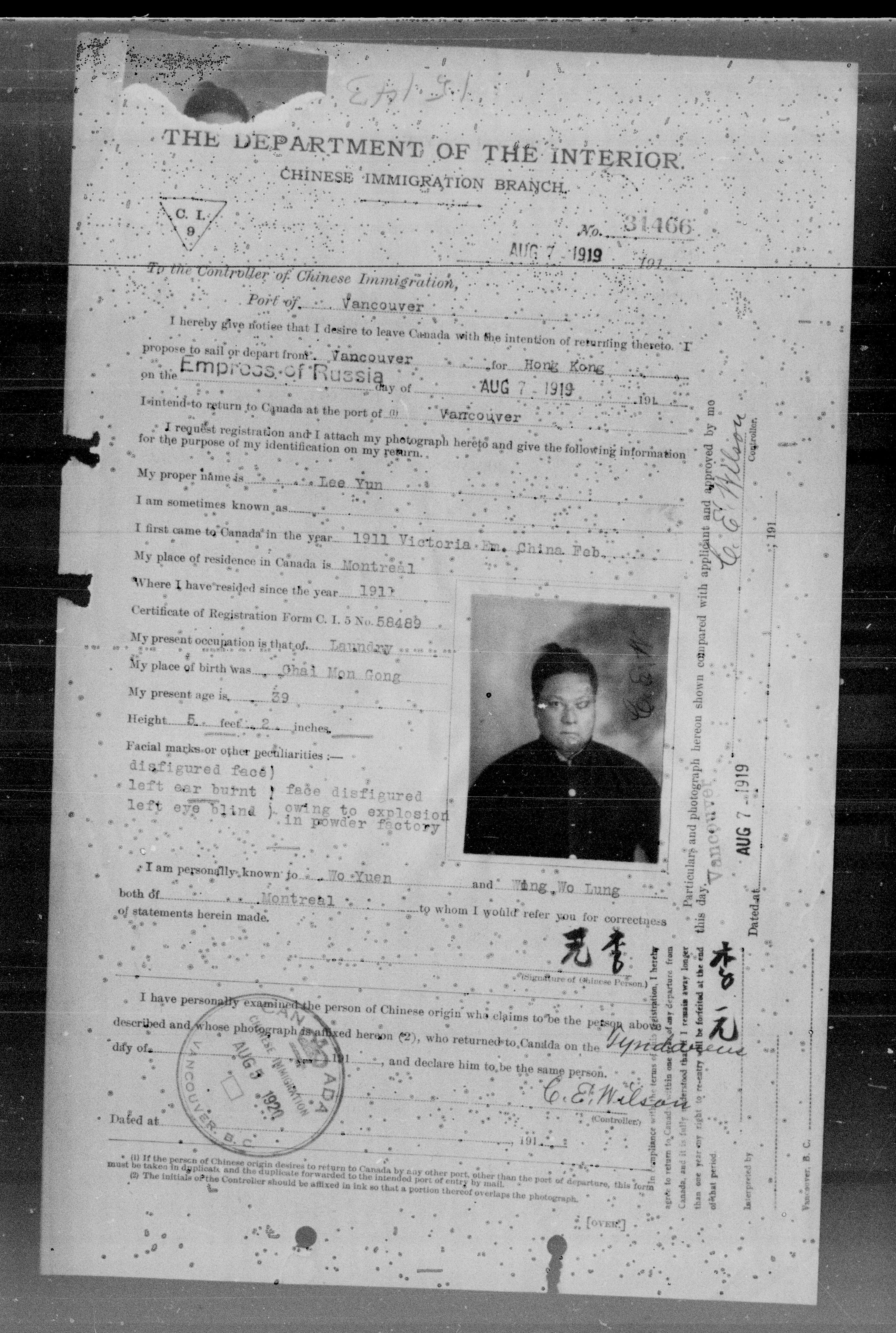Chinese immigration records : C.I.9 certificates from Vancouver and Victoria
