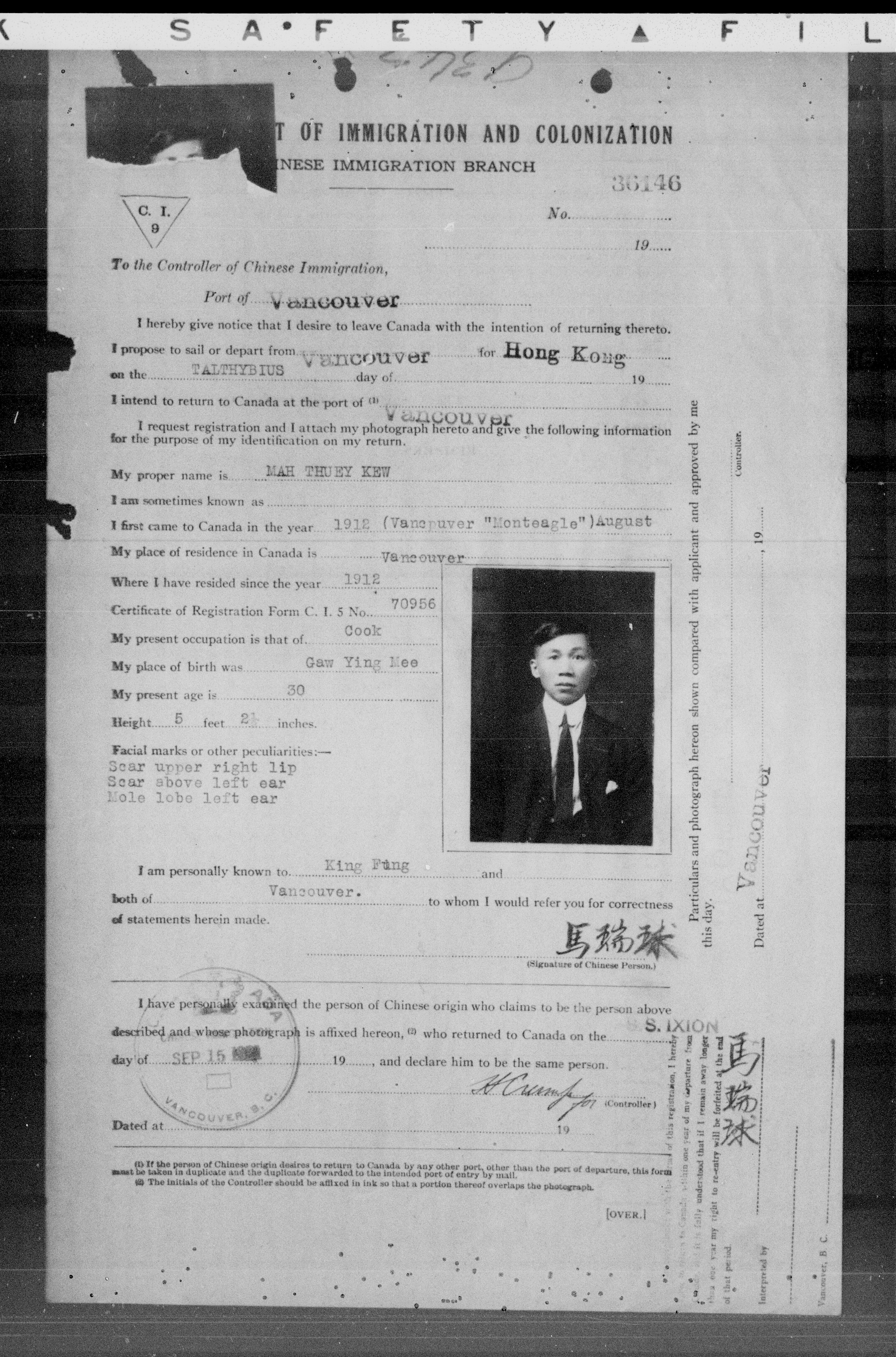 Chinese immigration records : C.I.9 certificates from Vancouver and Victoria