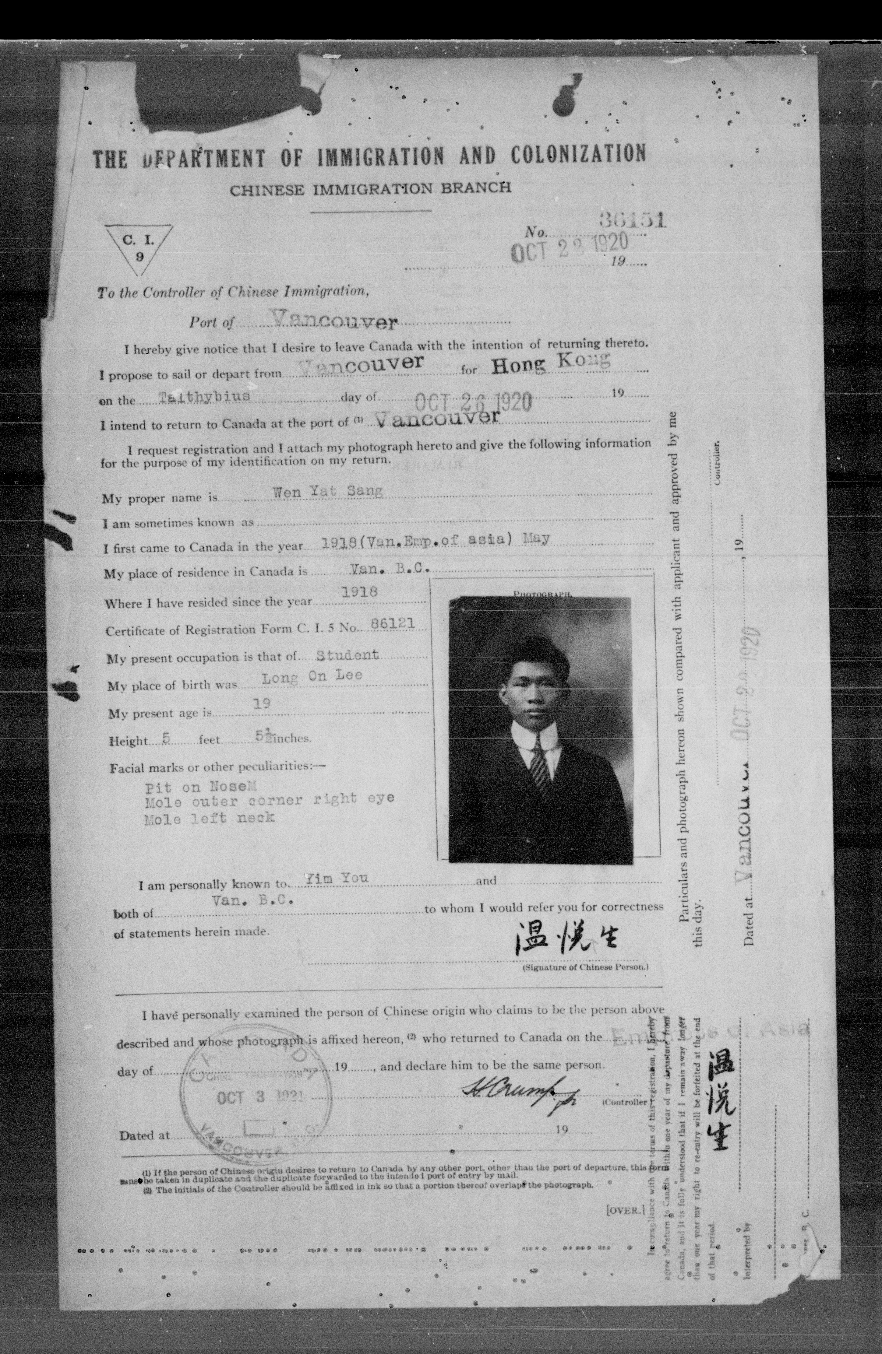Chinese immigration records : C.I.9 certificates from Vancouver and Victoria