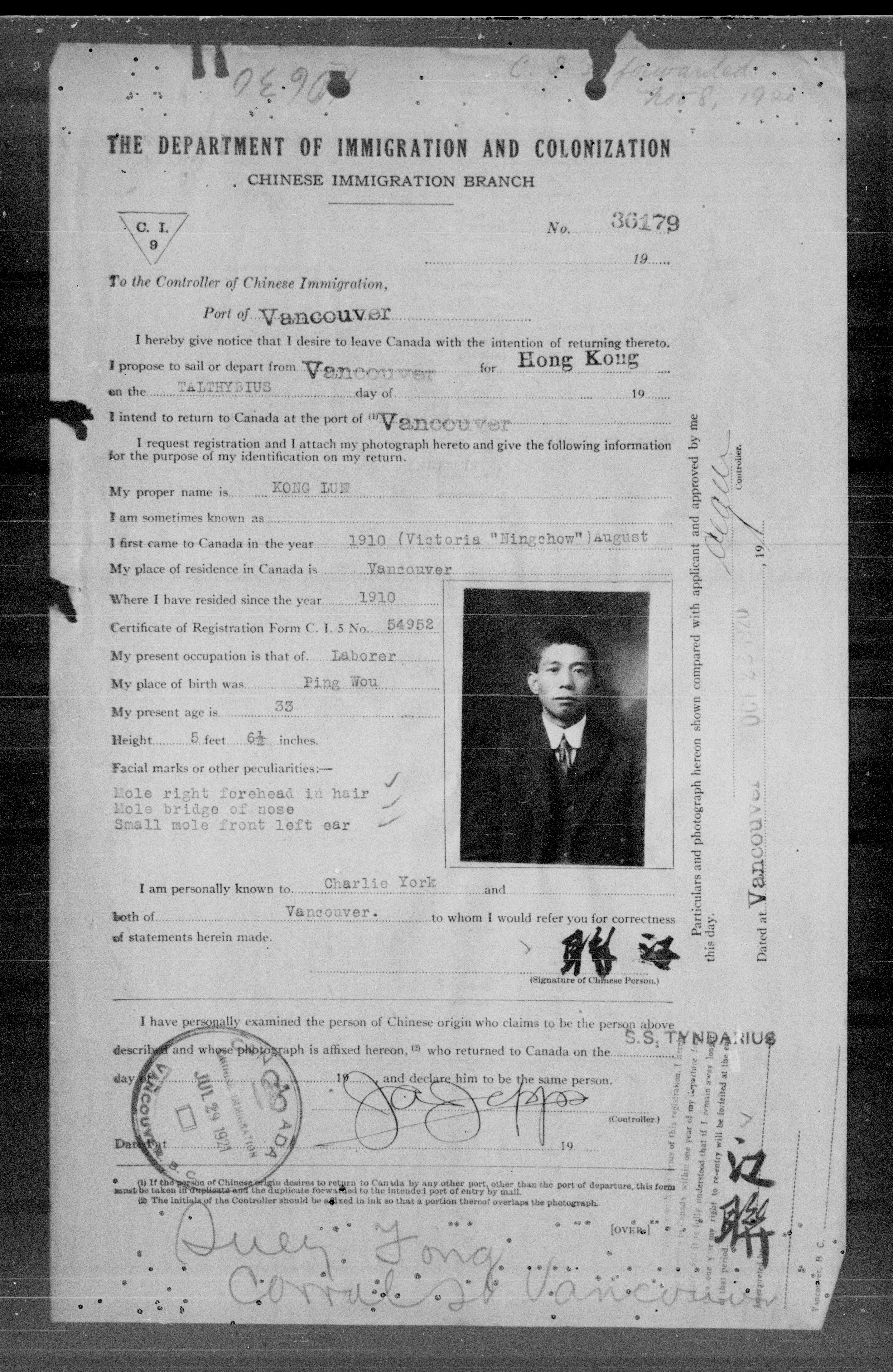 Chinese immigration records : C.I.9 certificates from Vancouver and Victoria