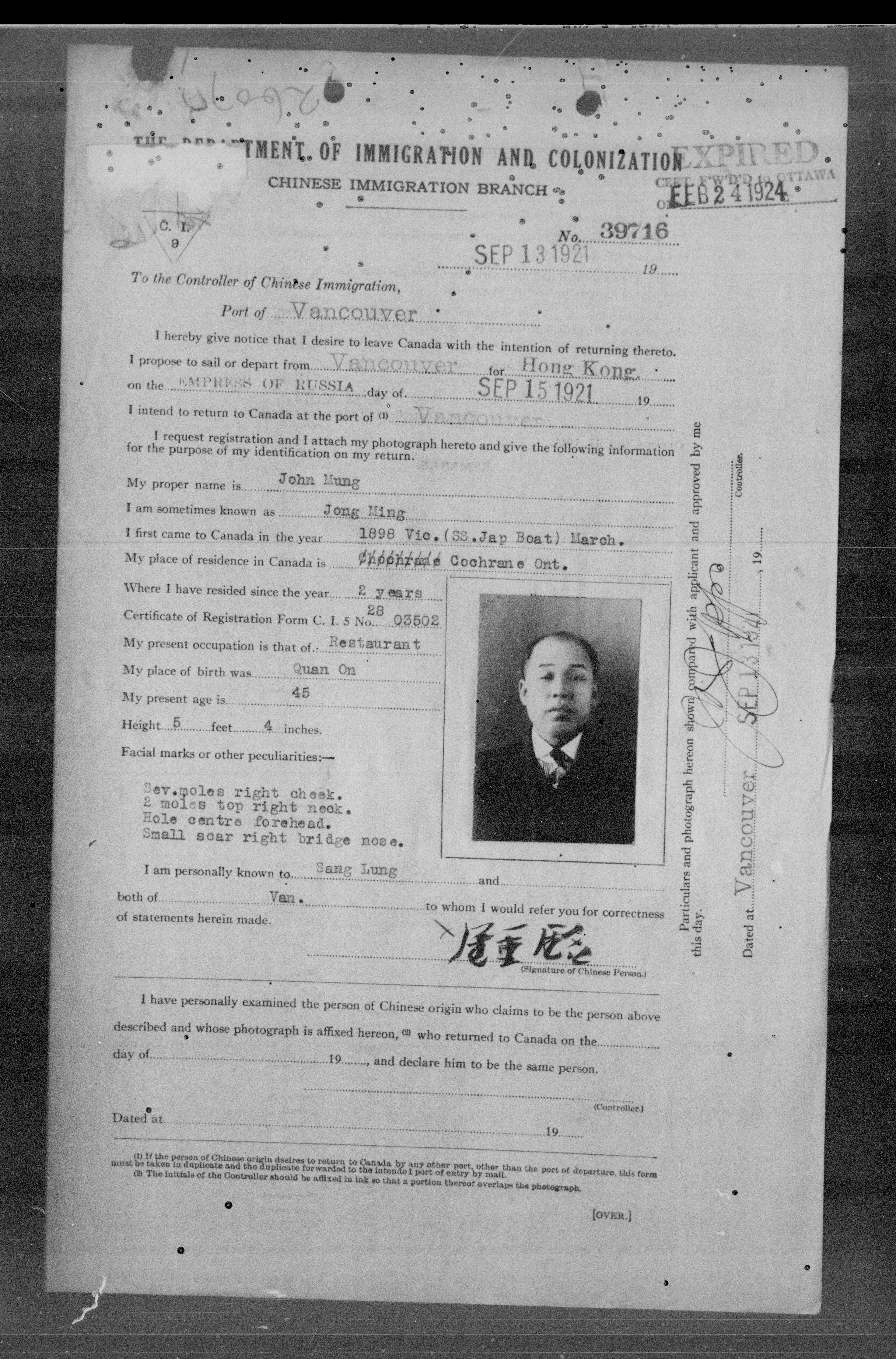 Chinese immigration records : C.I.9 certificates from Vancouver and Victoria