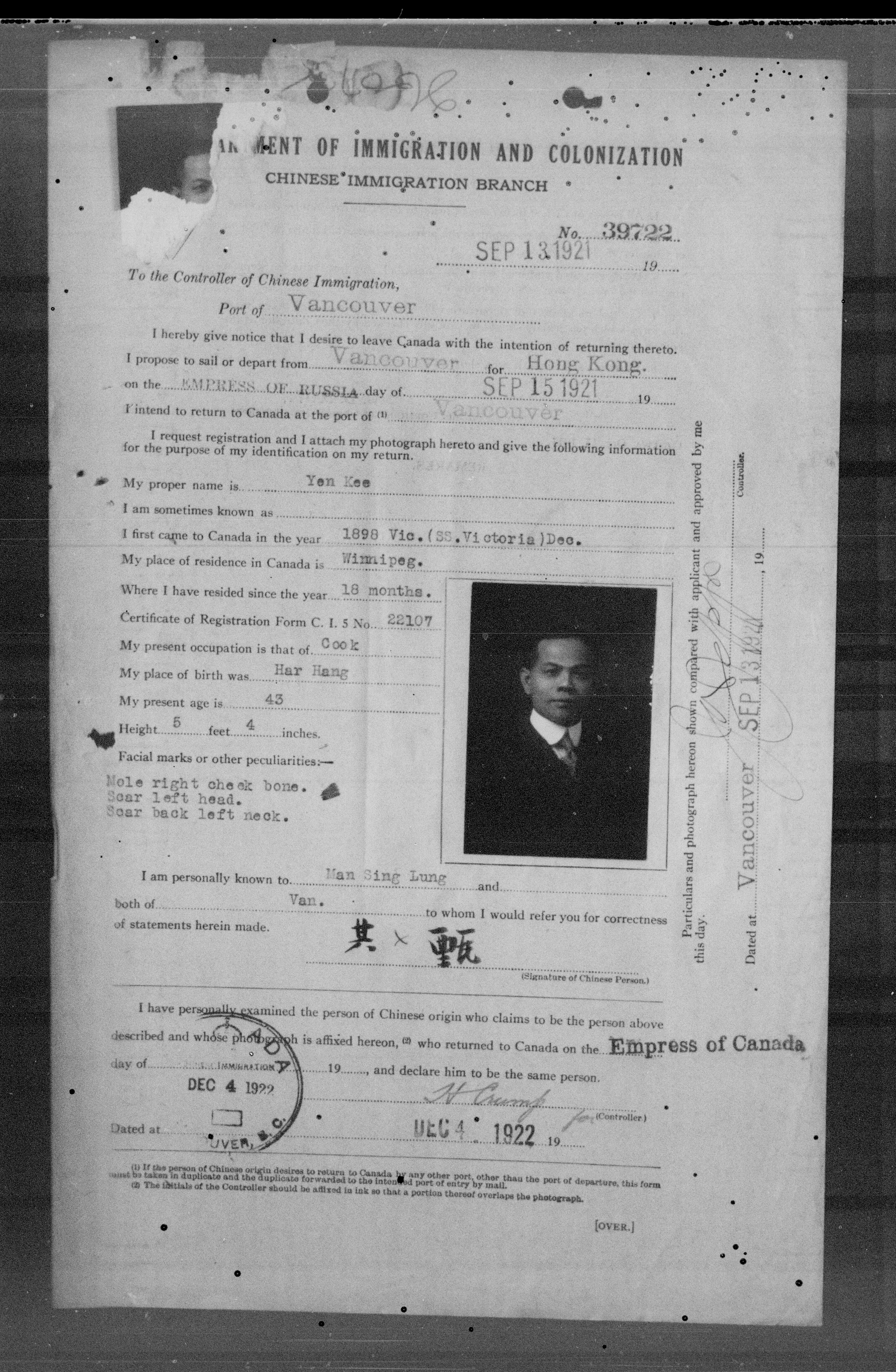 Chinese immigration records : C.I.9 certificates from Vancouver and Victoria