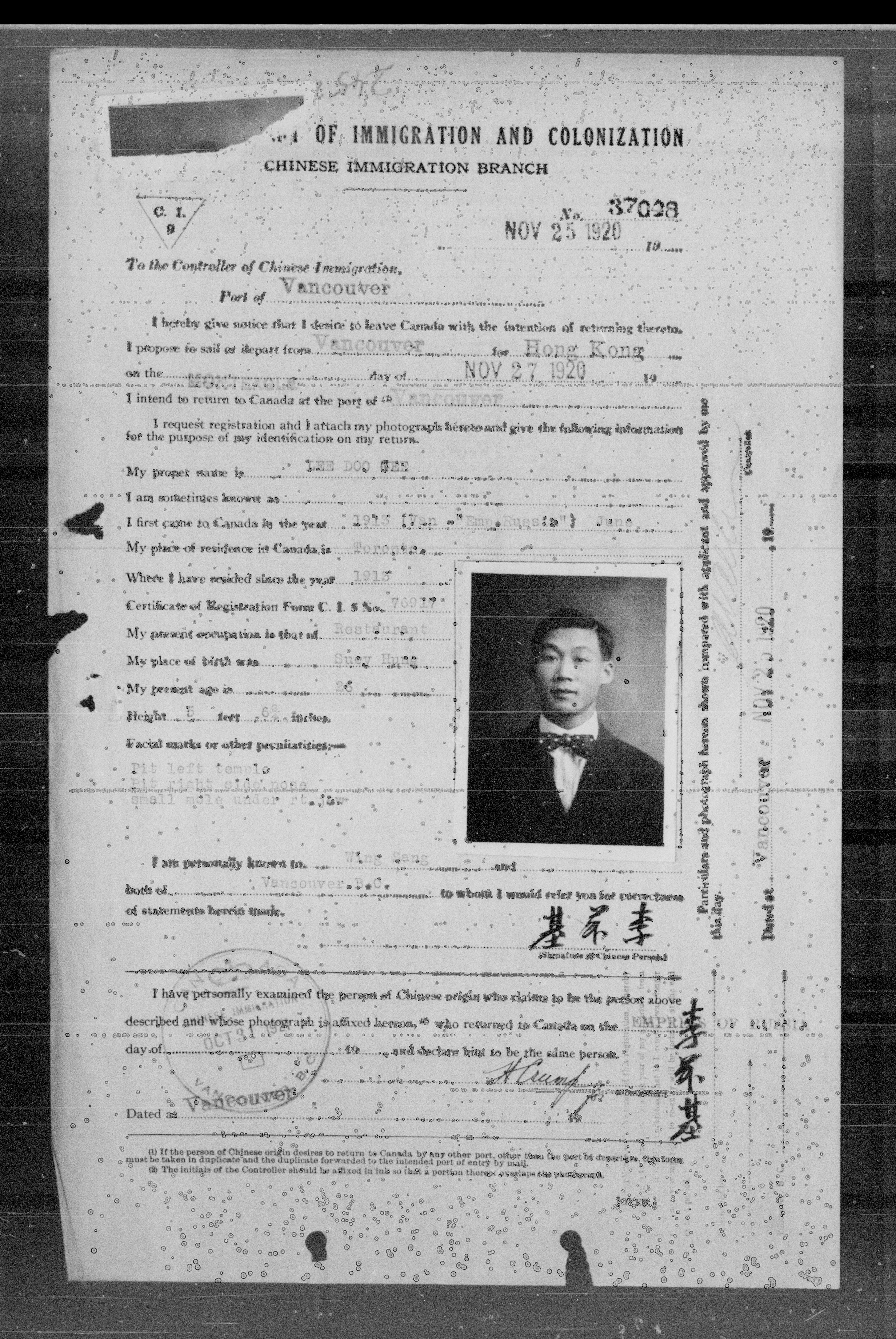 Chinese immigration records : C.I.9 certificates from Vancouver and Victoria
