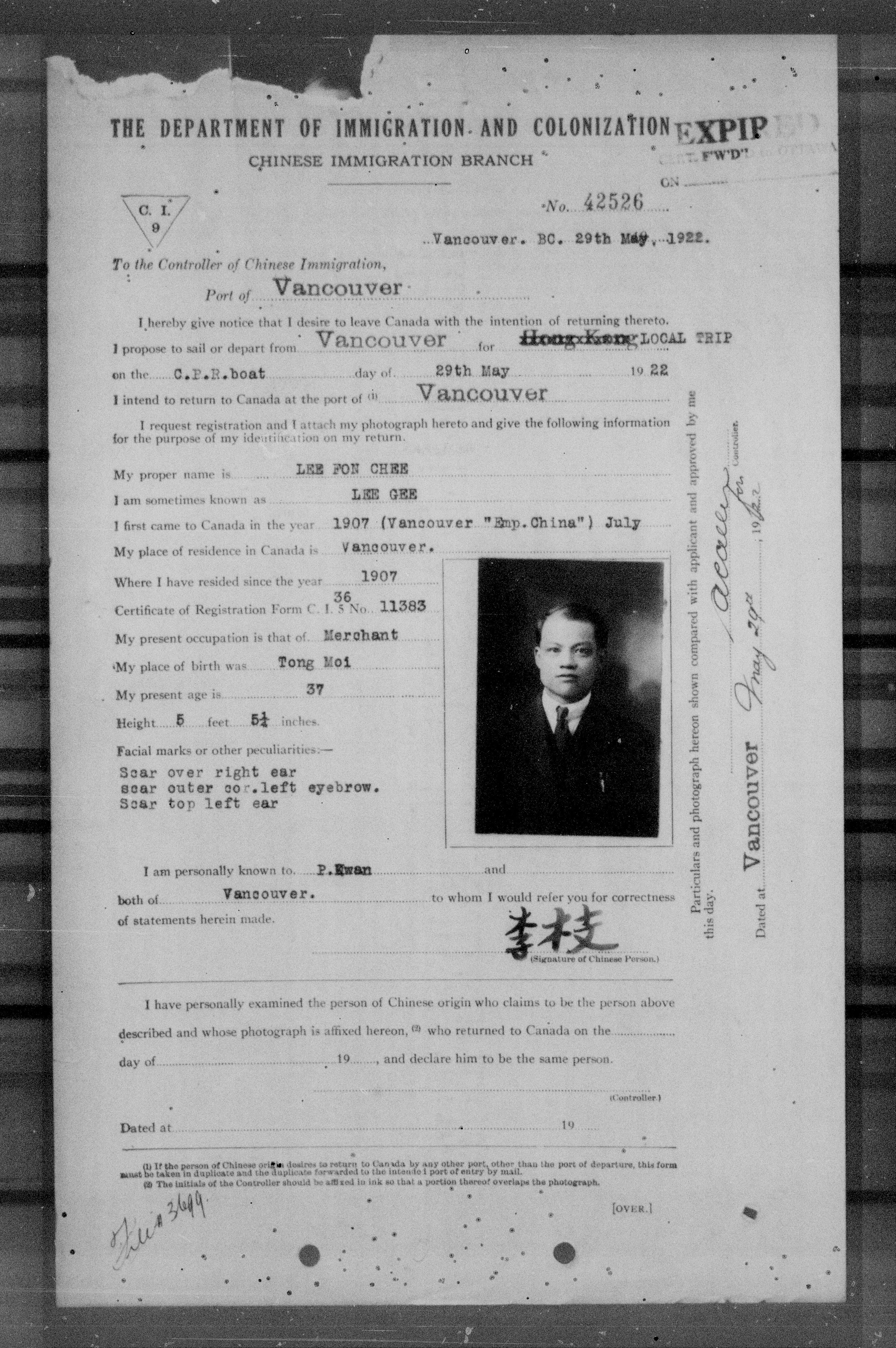 Chinese immigration records : C.I.9 certificates from Vancouver and Victoria