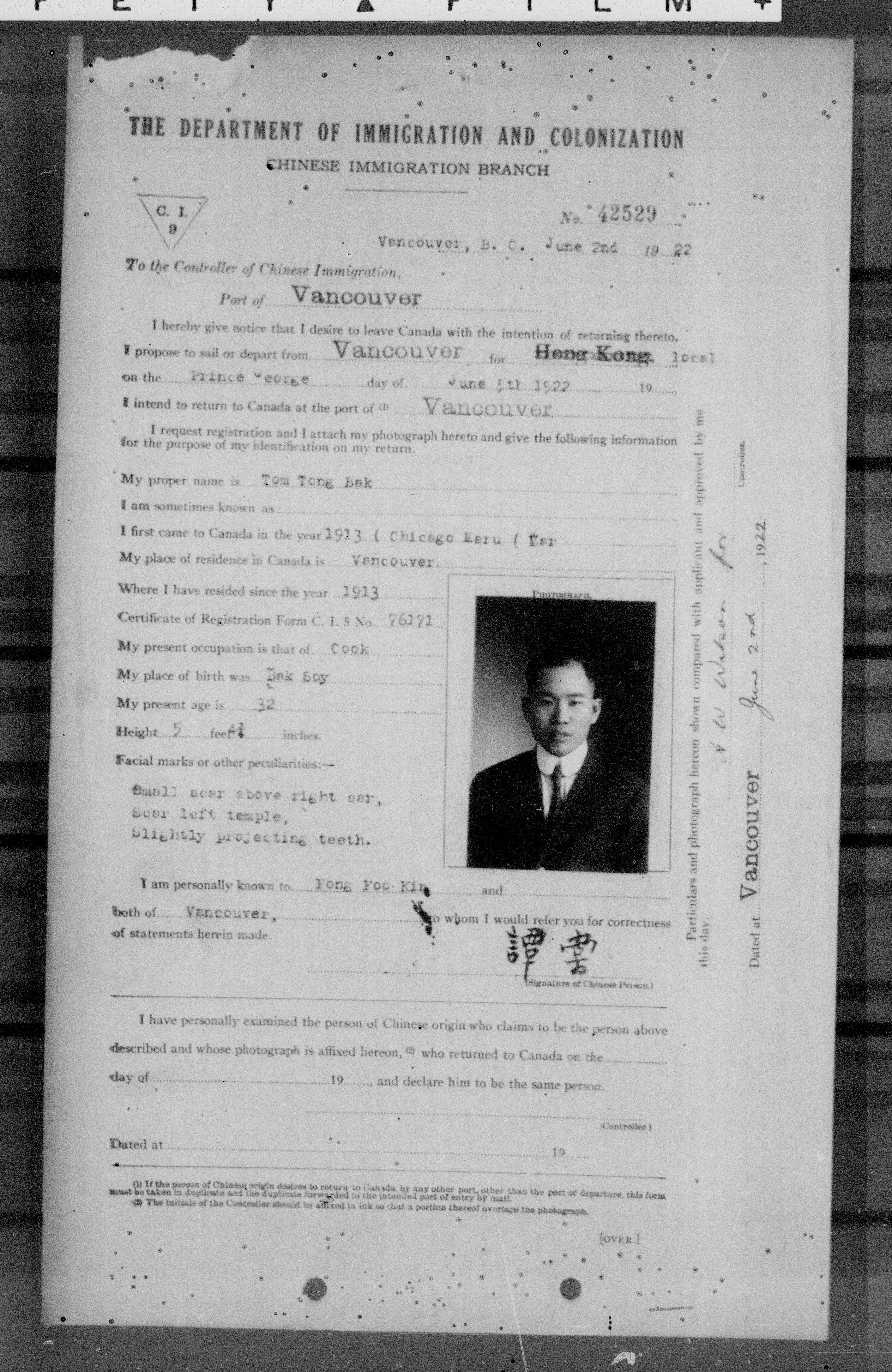 Chinese immigration records : C.I.9 certificates from Vancouver and Victoria