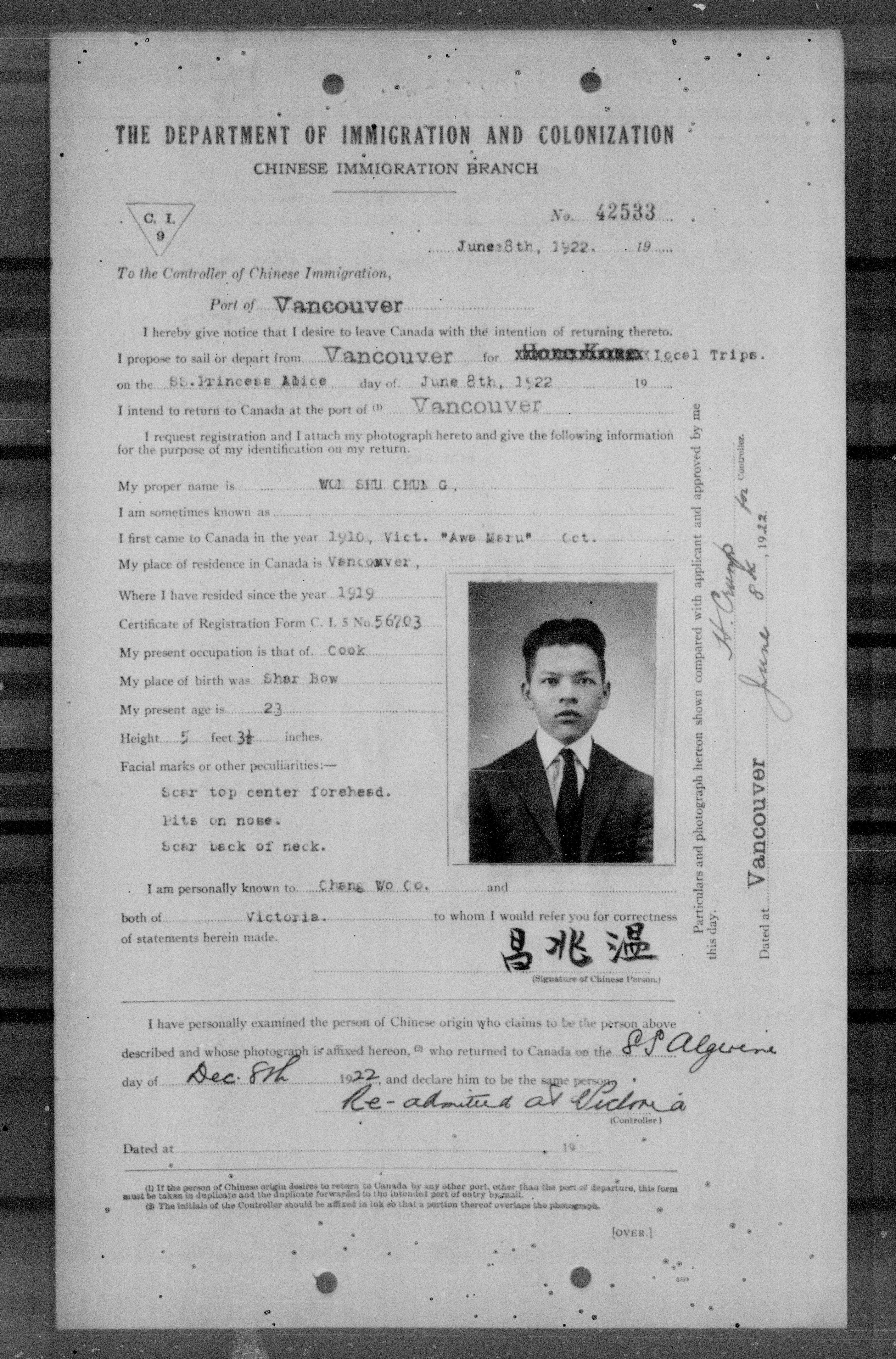 Chinese immigration records : C.I.9 certificates from Vancouver and Victoria