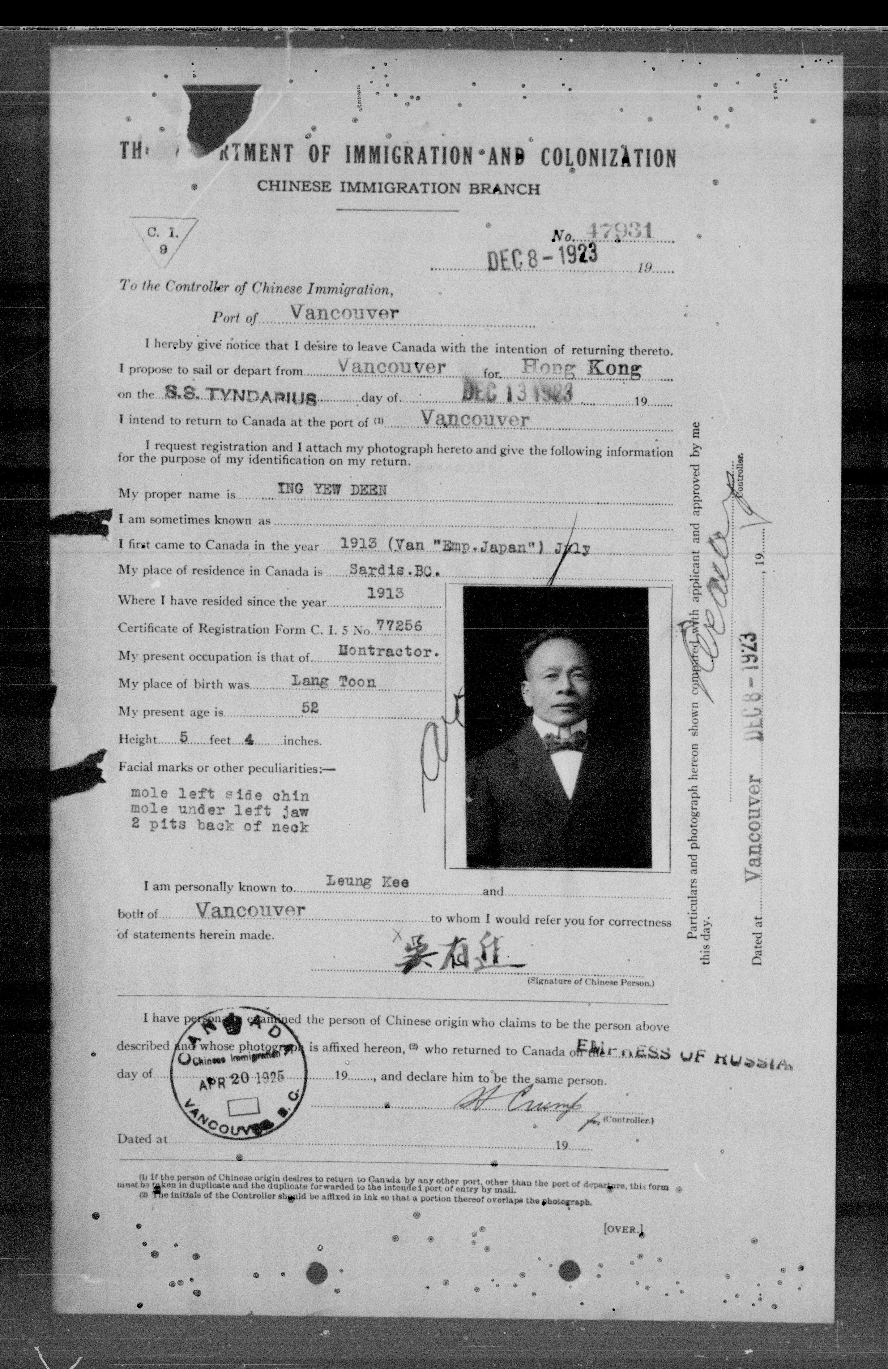 Chinese immigration records : C.I.9 certificates from Vancouver and Victoria