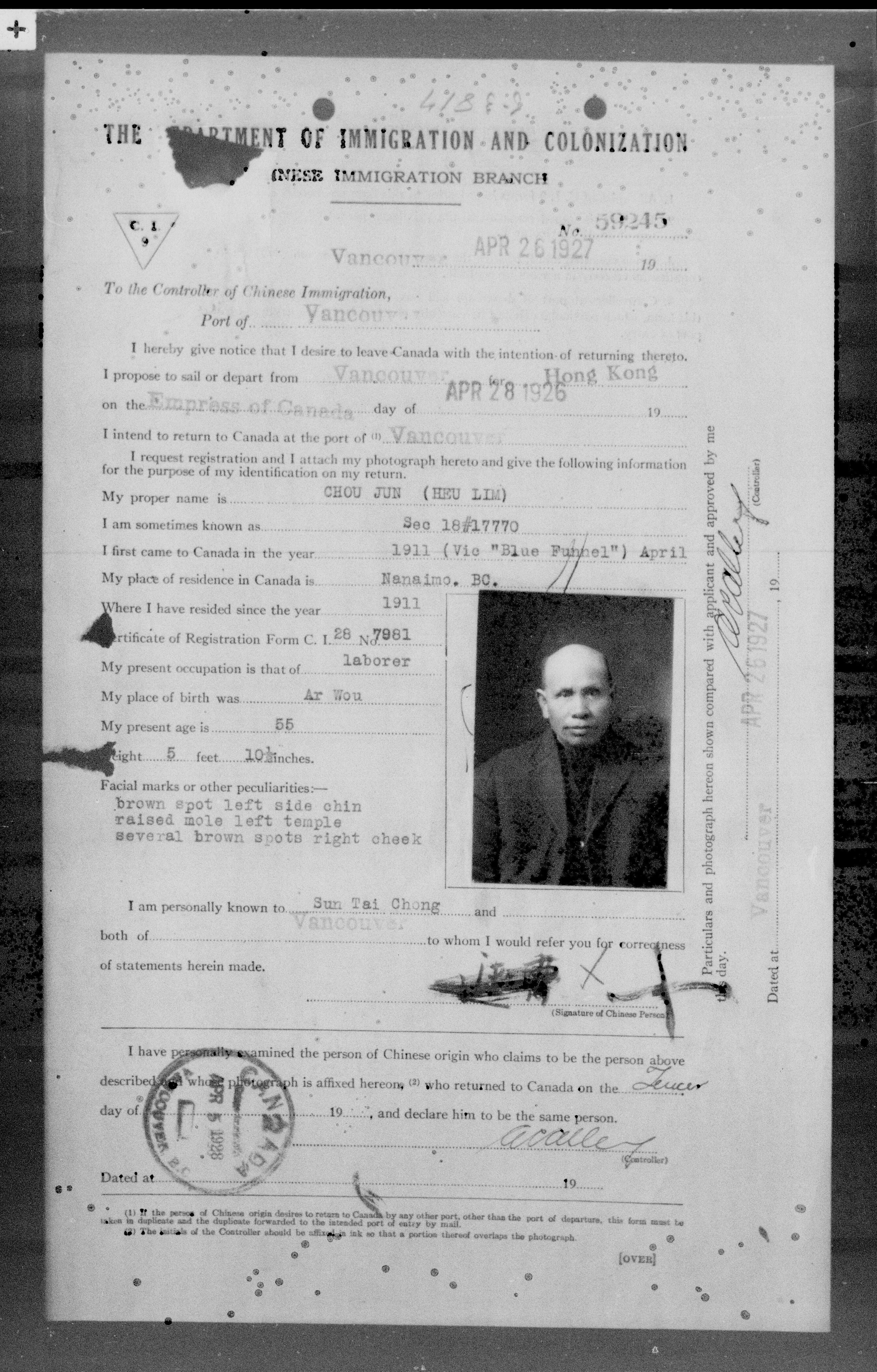 Chinese immigration records : C.I.9 certificates from Vancouver and Victoria