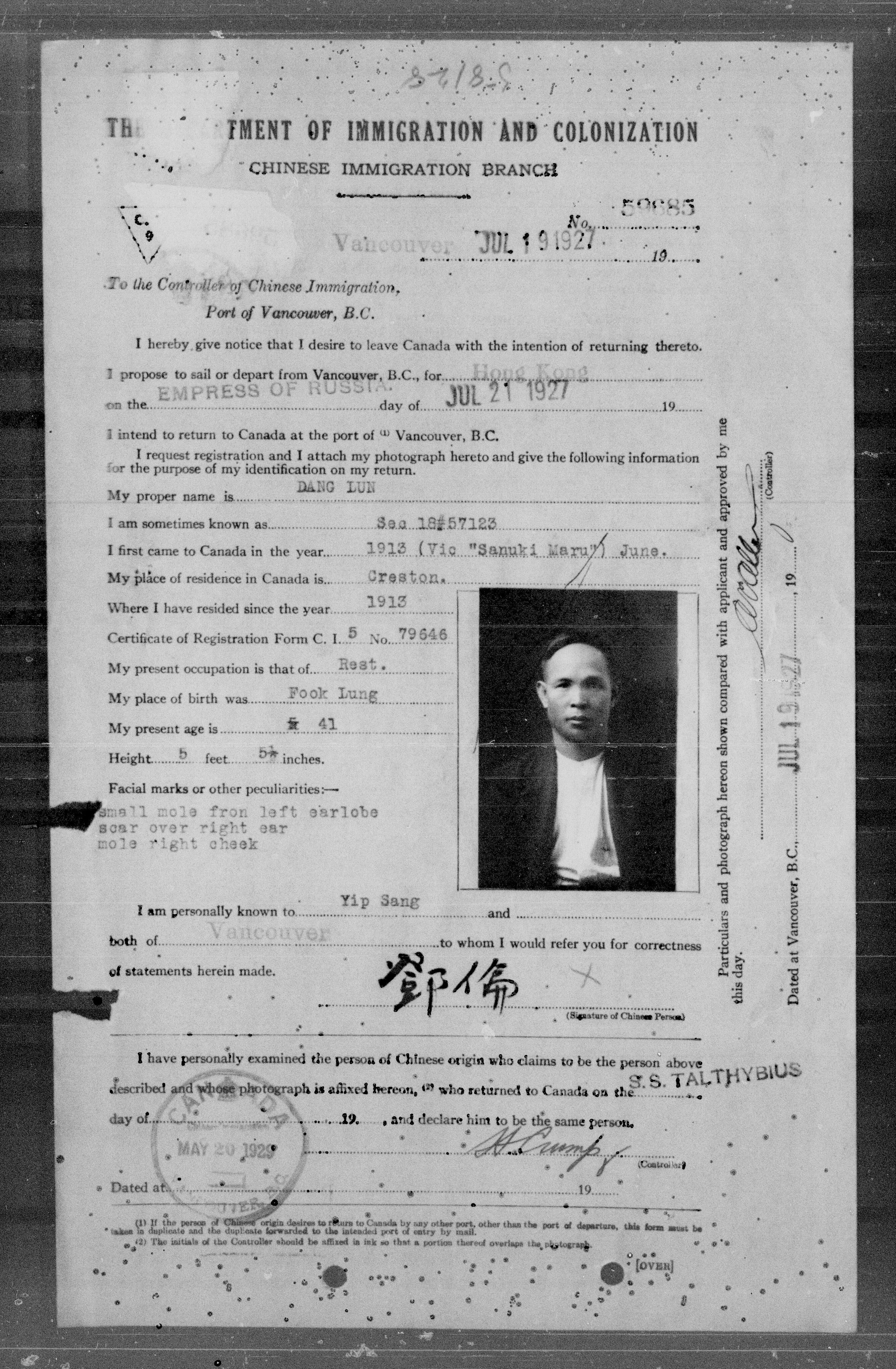 Chinese immigration records : C.I.9 certificates from Vancouver and Victoria