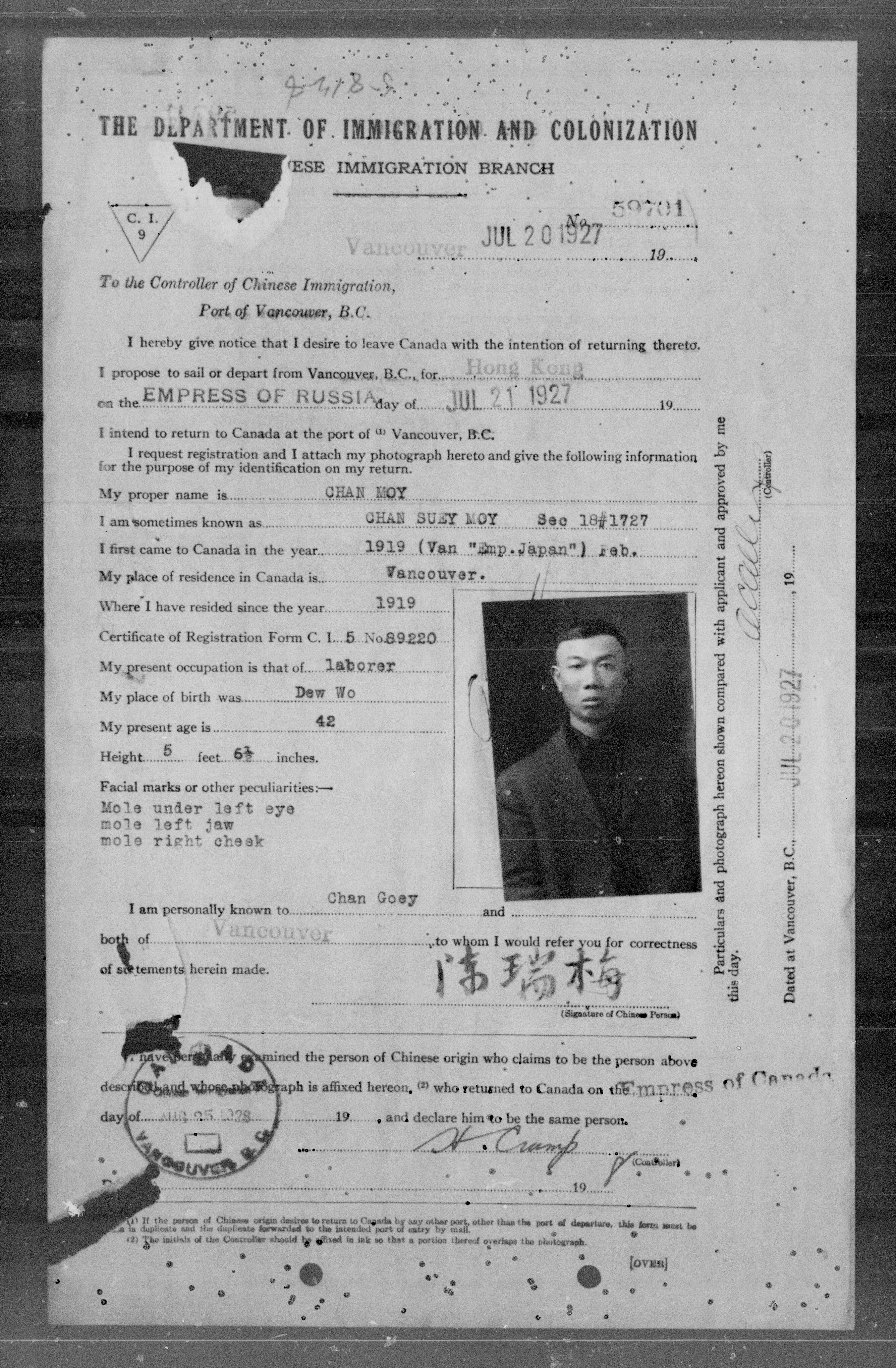 Chinese immigration records : C.I.9 certificates from Vancouver and Victoria