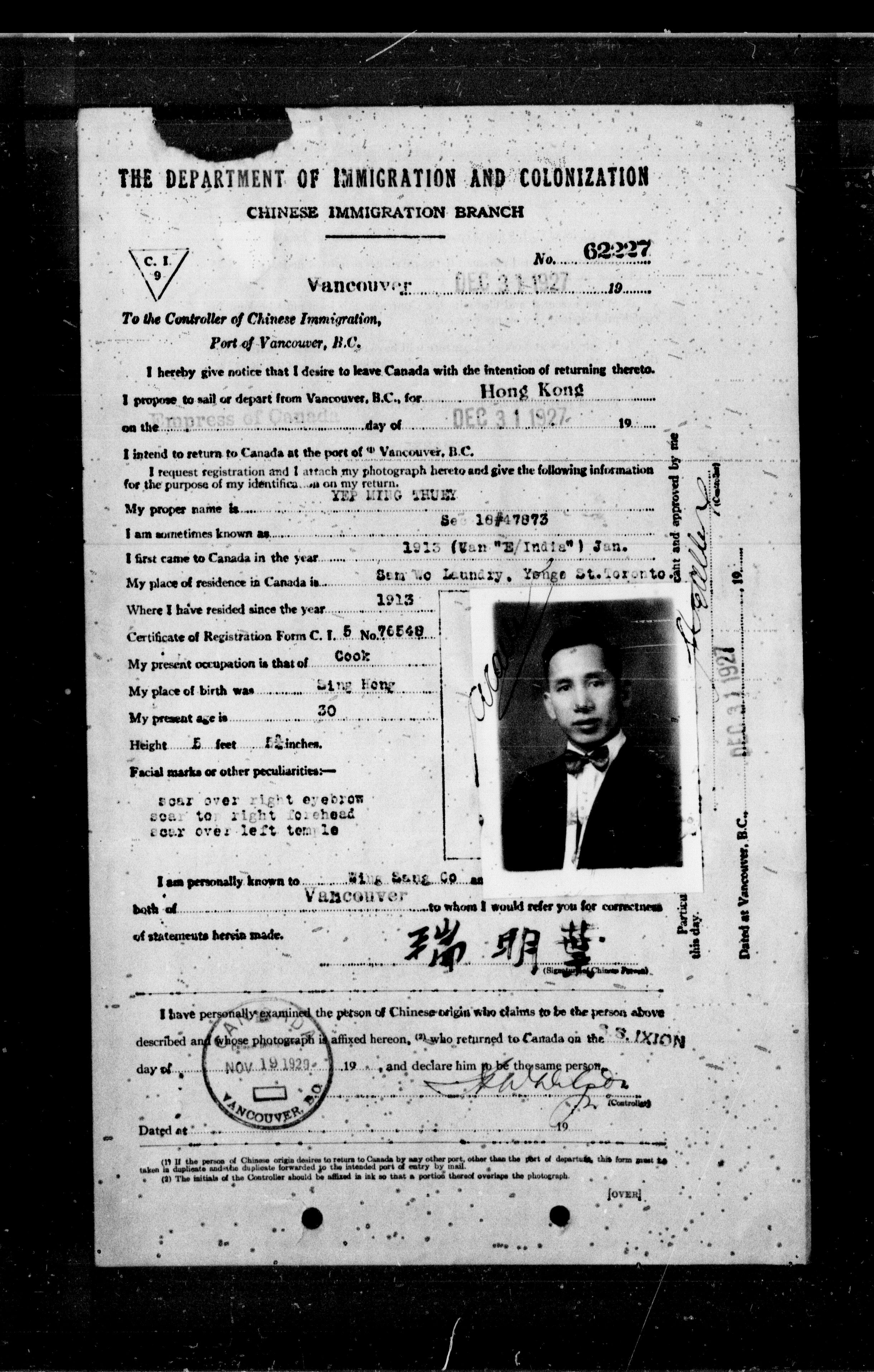 Chinese immigration records : C.I.9 certificates from Vancouver and Victoria