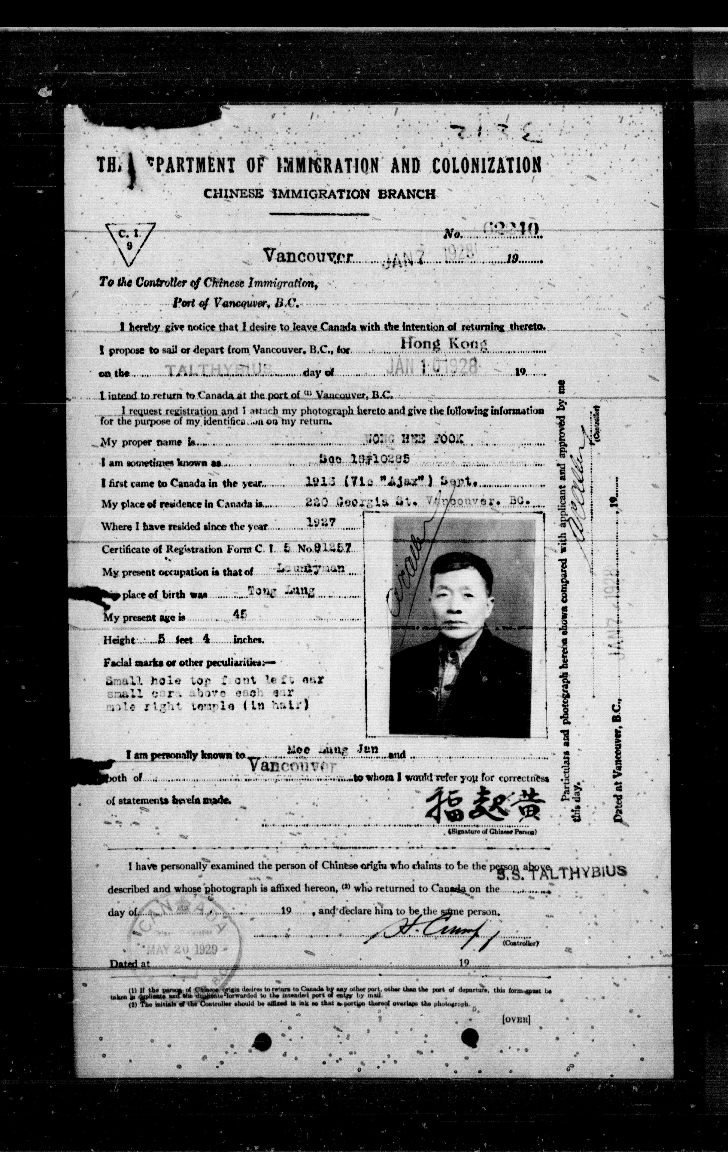 Chinese immigration records : C.I.9 certificates from Vancouver and Victoria
