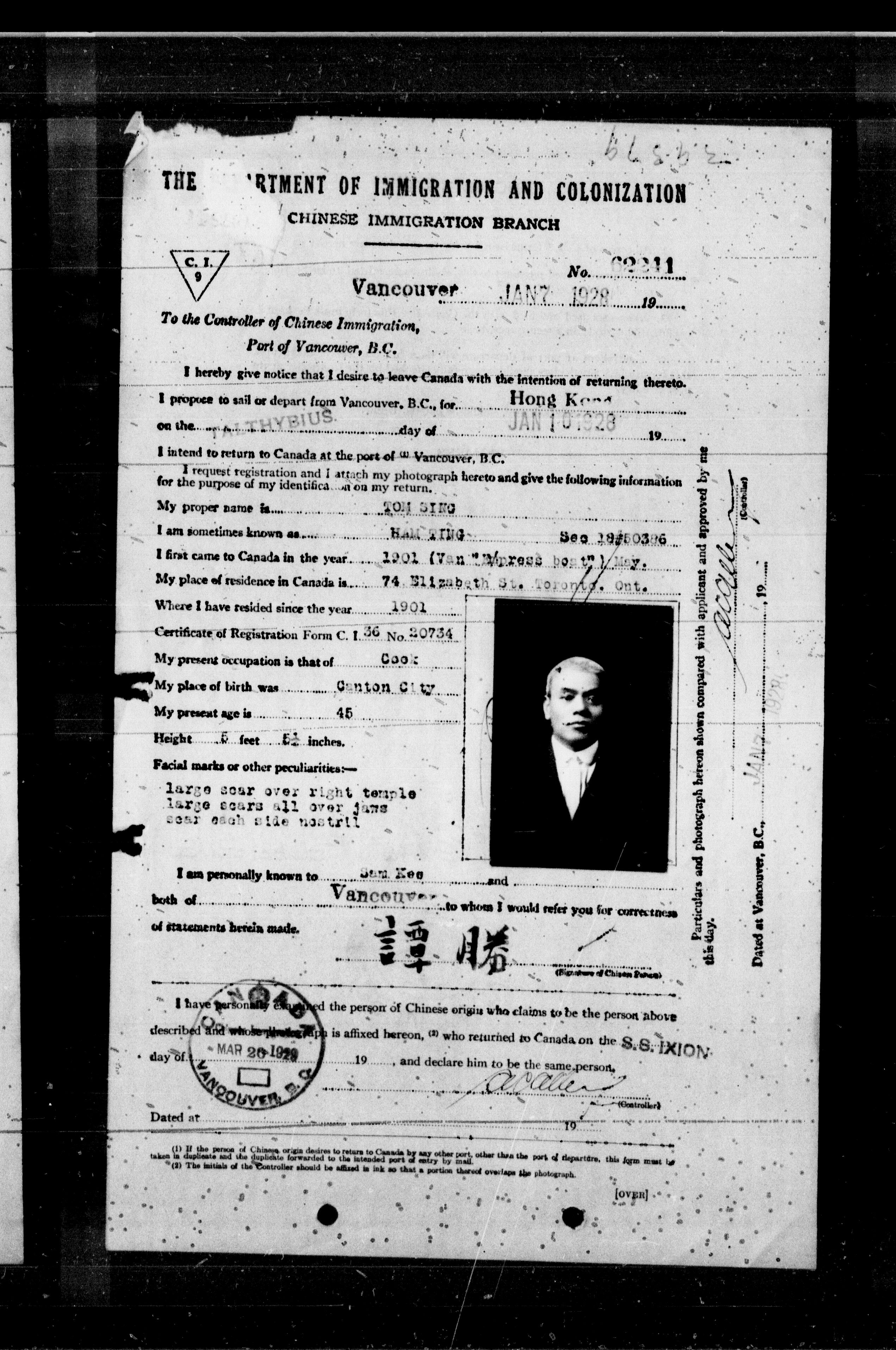Chinese immigration records : C.I.9 certificates from Vancouver and Victoria
