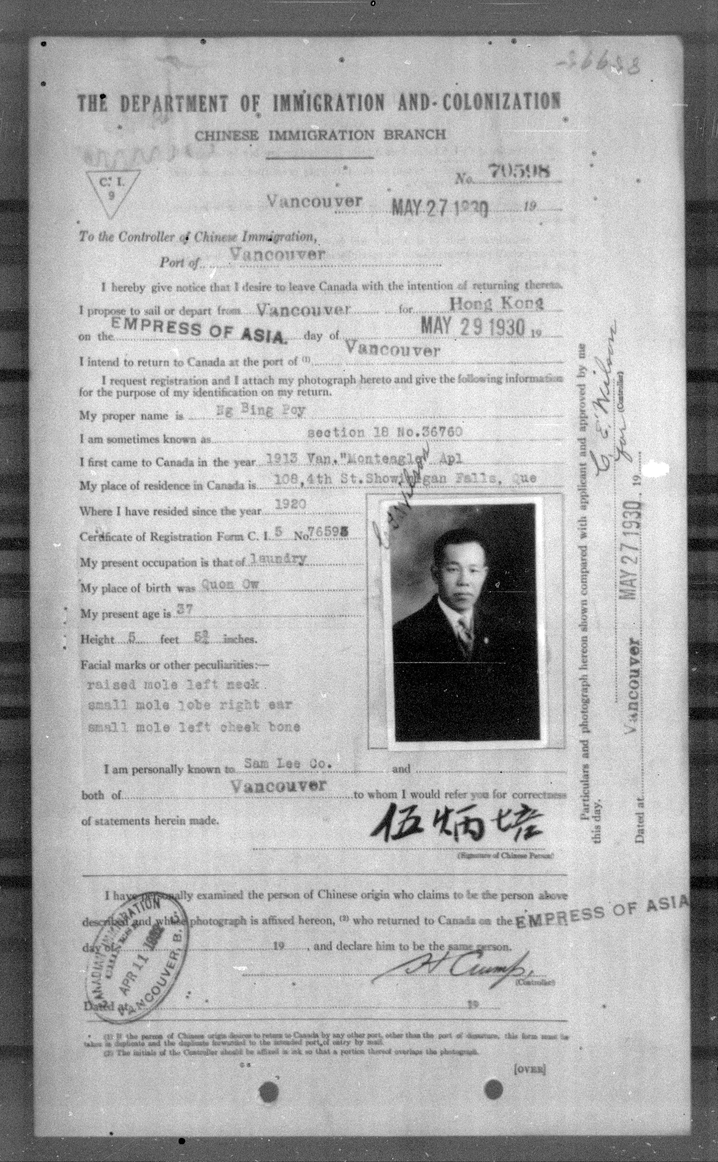 Records of entry and other records - Department of Immigration and Colonization - T-16604
