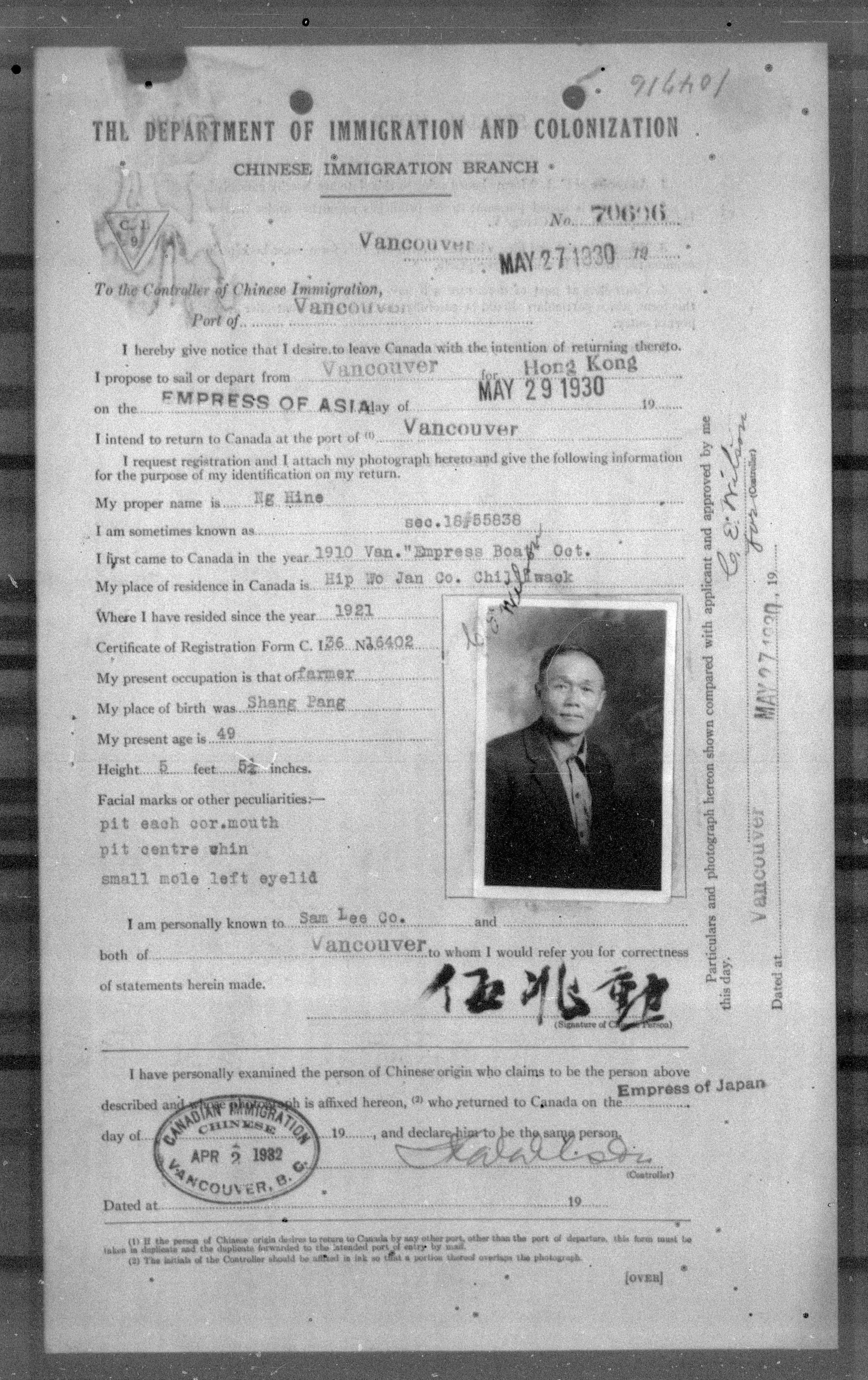 Records of entry and other records - Department of Immigration and Colonization - T-16604
