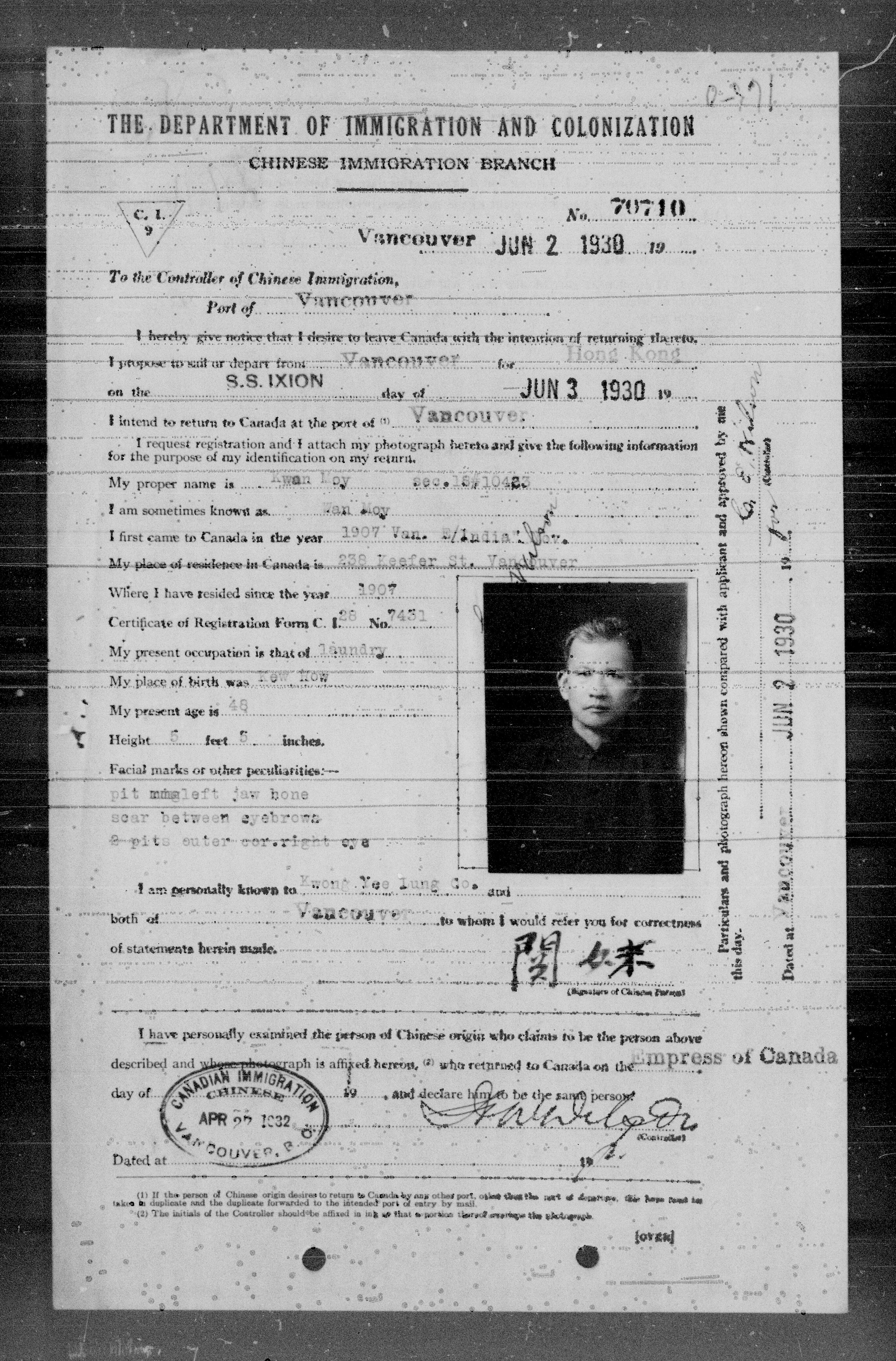 Chinese immigration records : C.I.9 certificates from Vancouver and Victoria