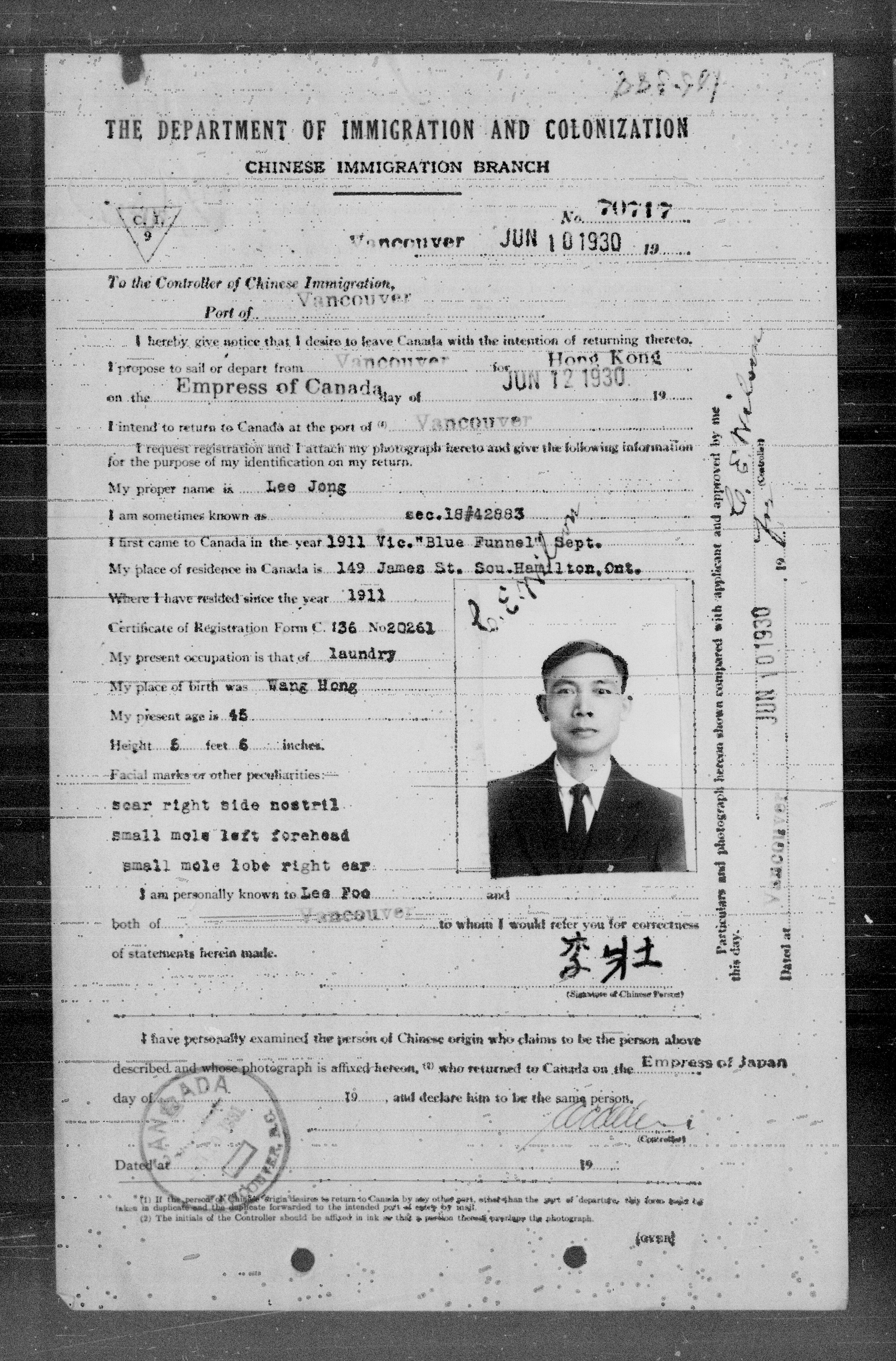 Chinese immigration records : C.I.9 certificates from Vancouver and Victoria