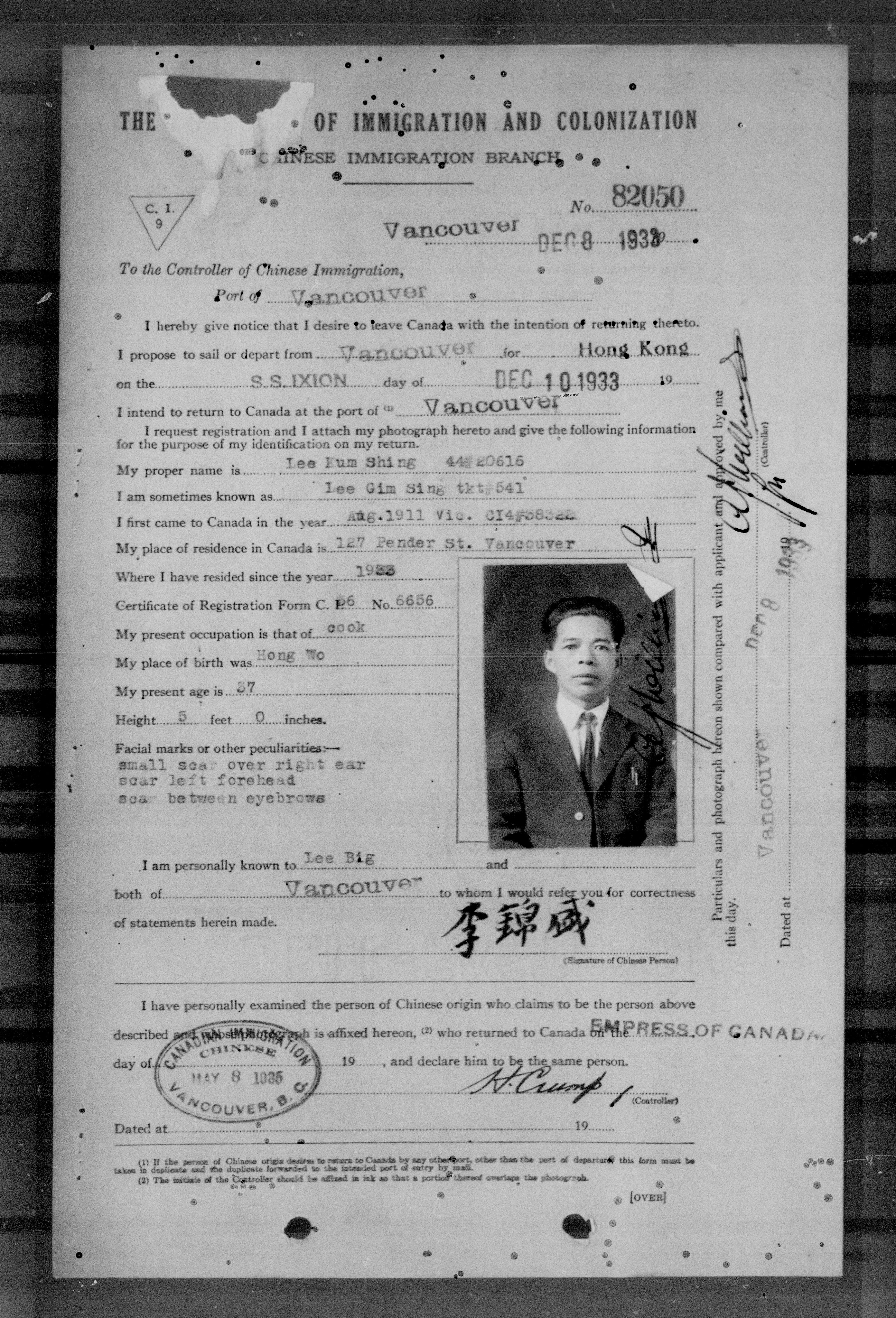Chinese immigration records : C.I.9 certificates from Vancouver and Victoria
