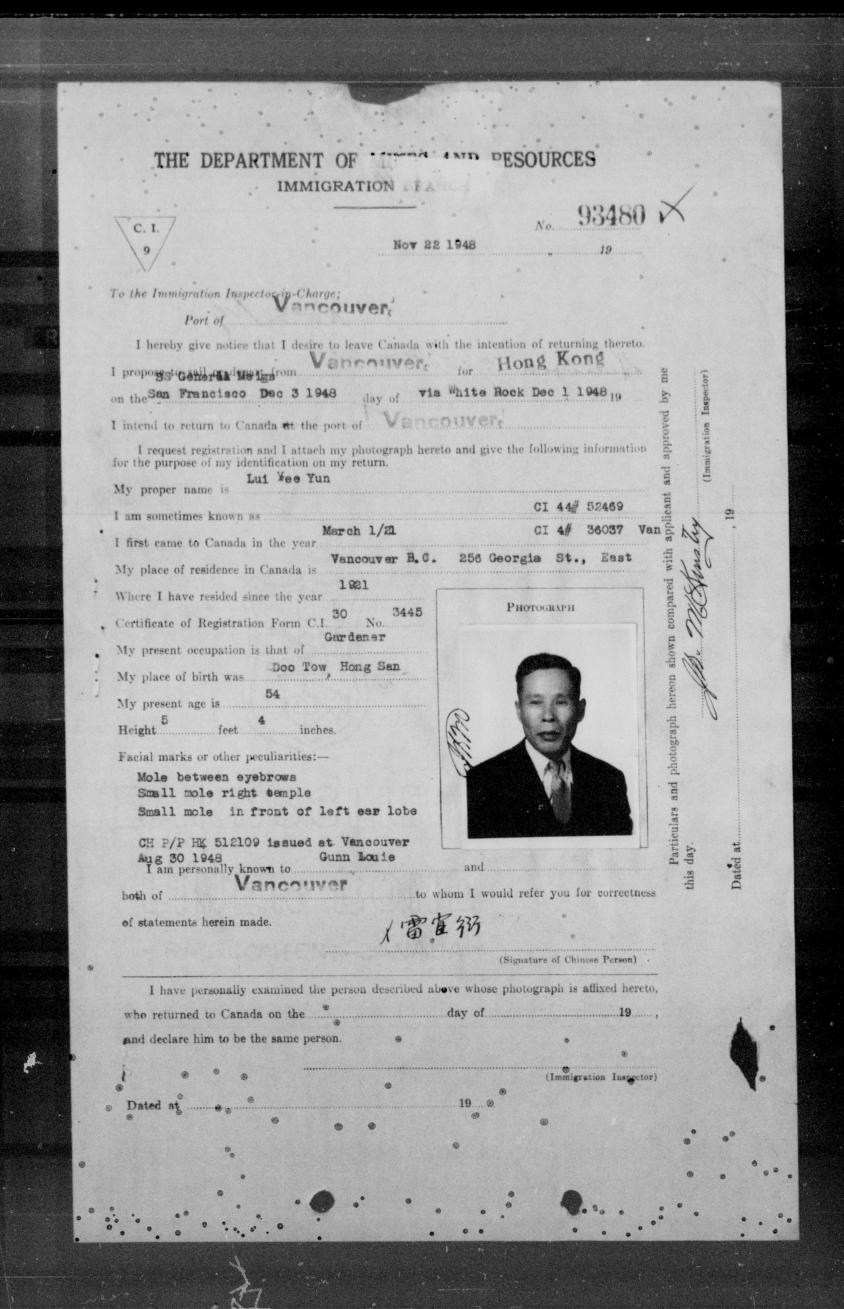 Chinese immigration records : C.I.9 certificates from Vancouver and Victoria