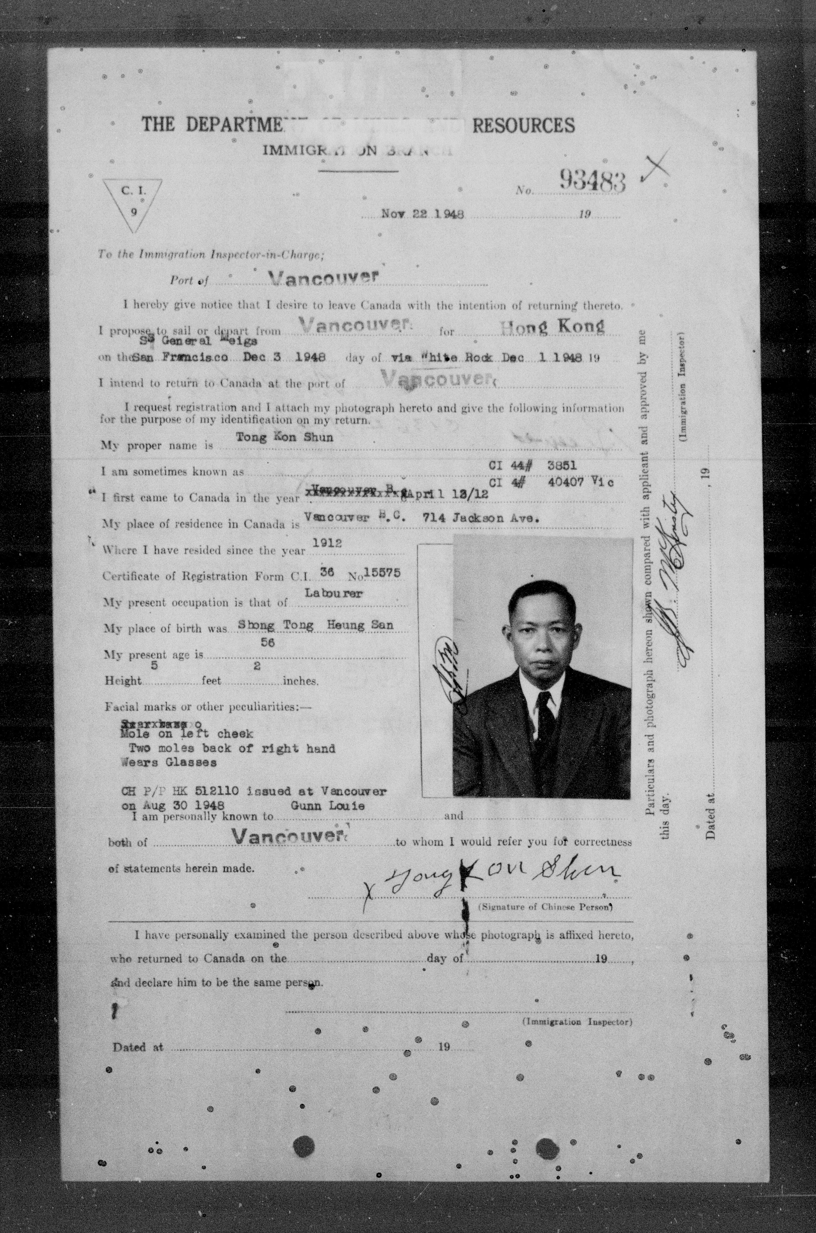 Chinese immigration records : C.I.9 certificates from Vancouver and Victoria