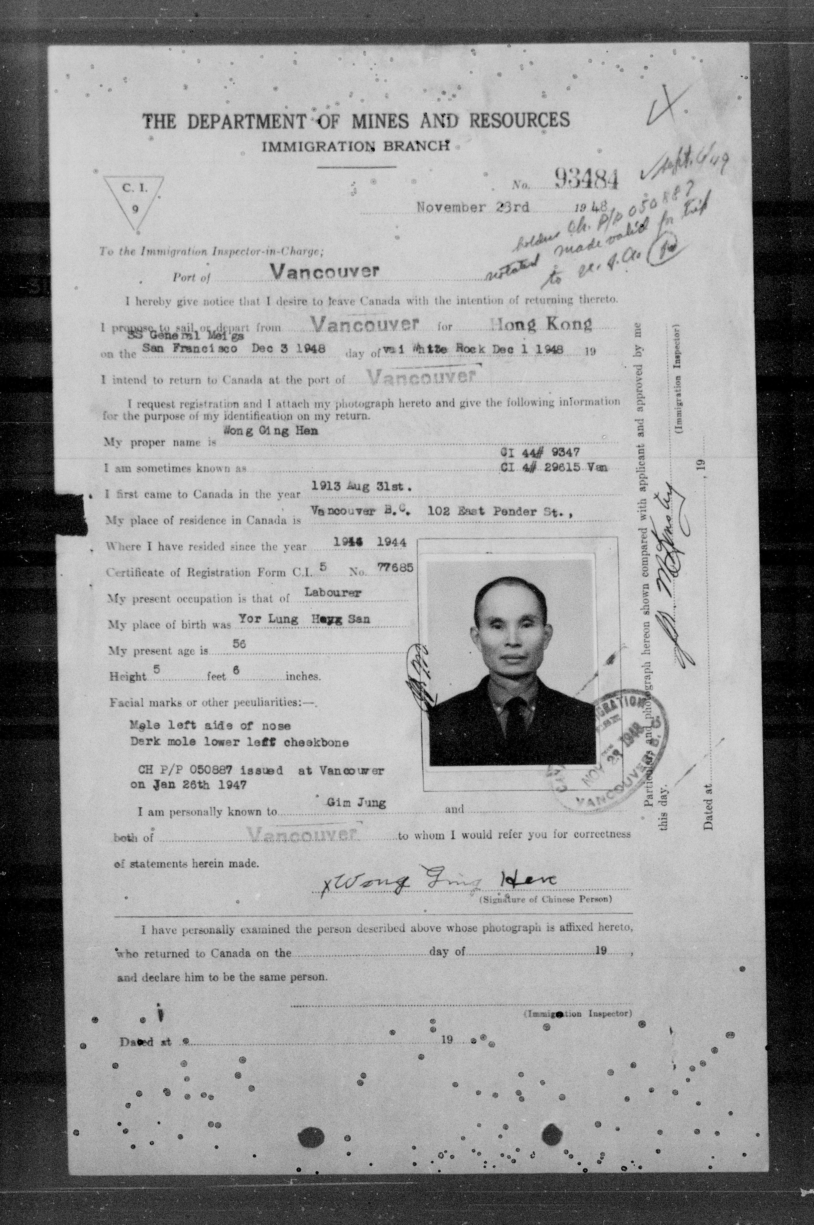 Chinese immigration records : C.I.9 certificates from Vancouver and Victoria