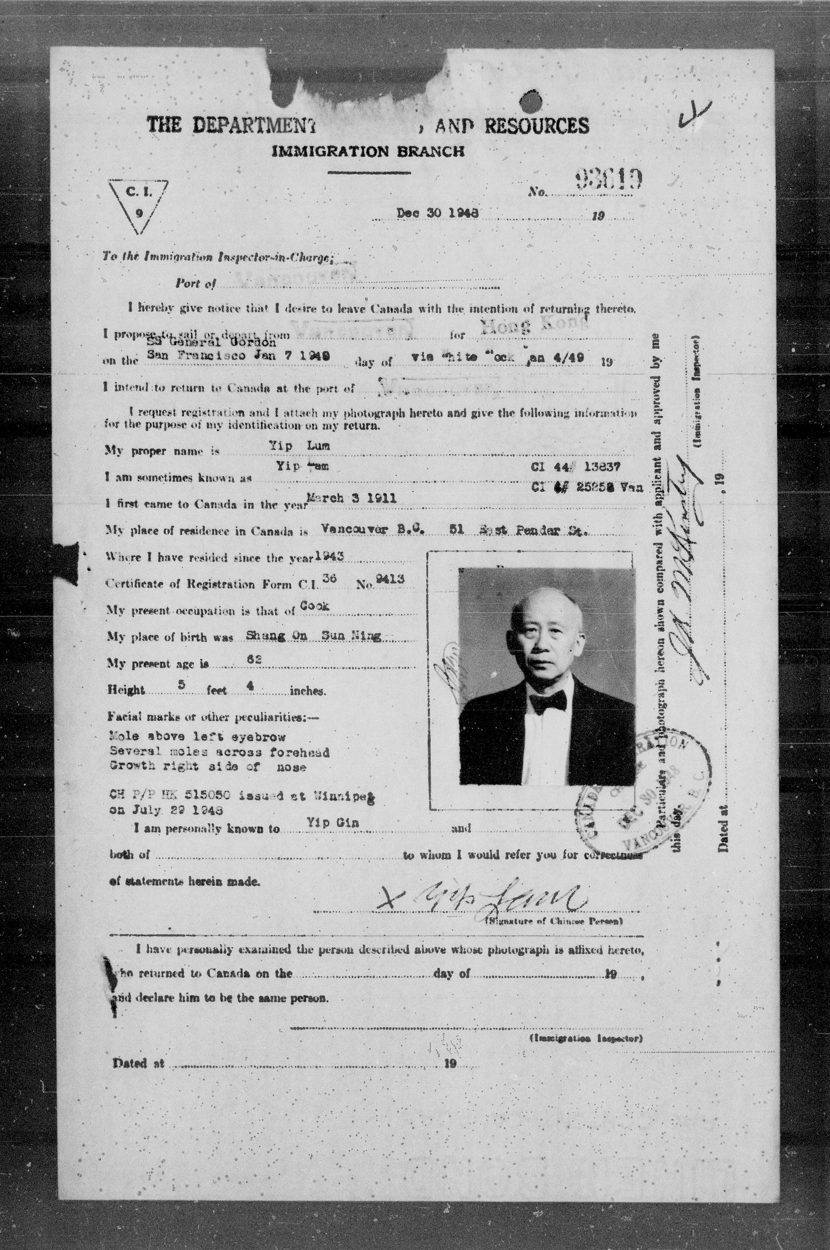 Chinese immigration records : C.I.9 certificates from Vancouver and Victoria