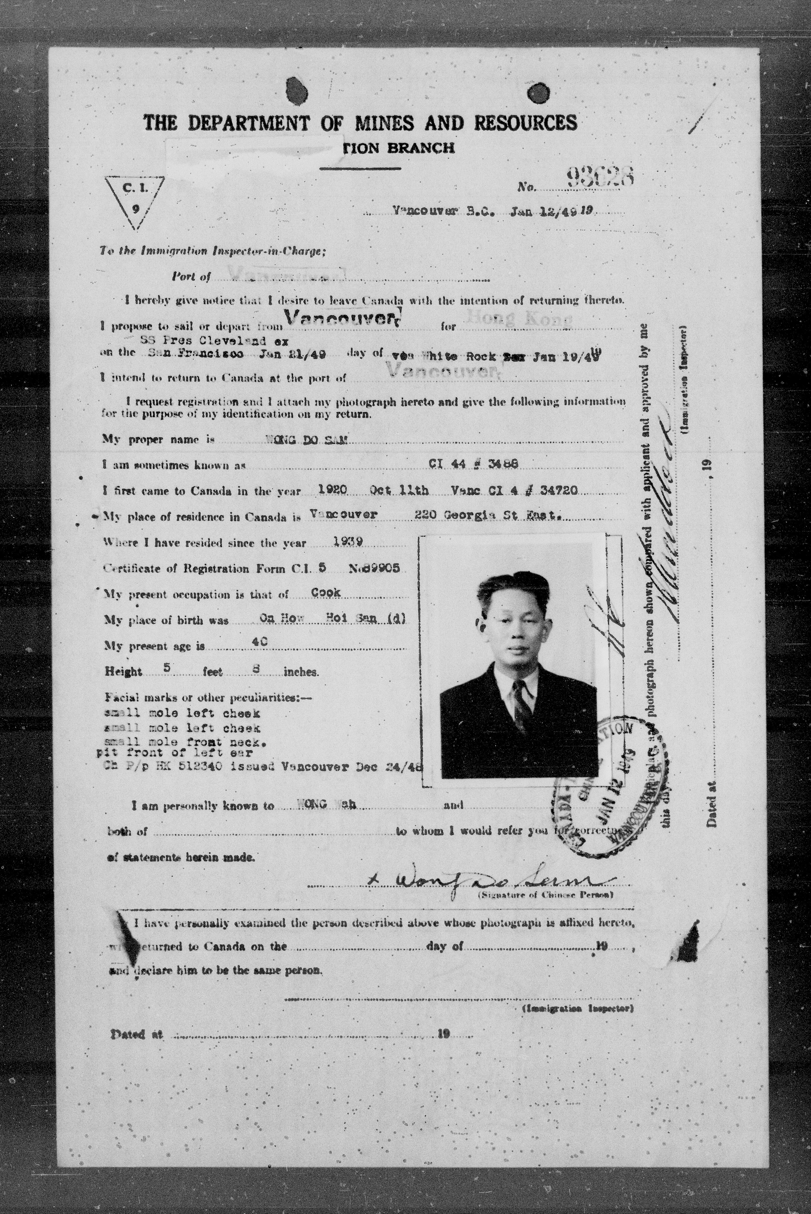 Chinese immigration records : C.I.9 certificates from Vancouver and Victoria