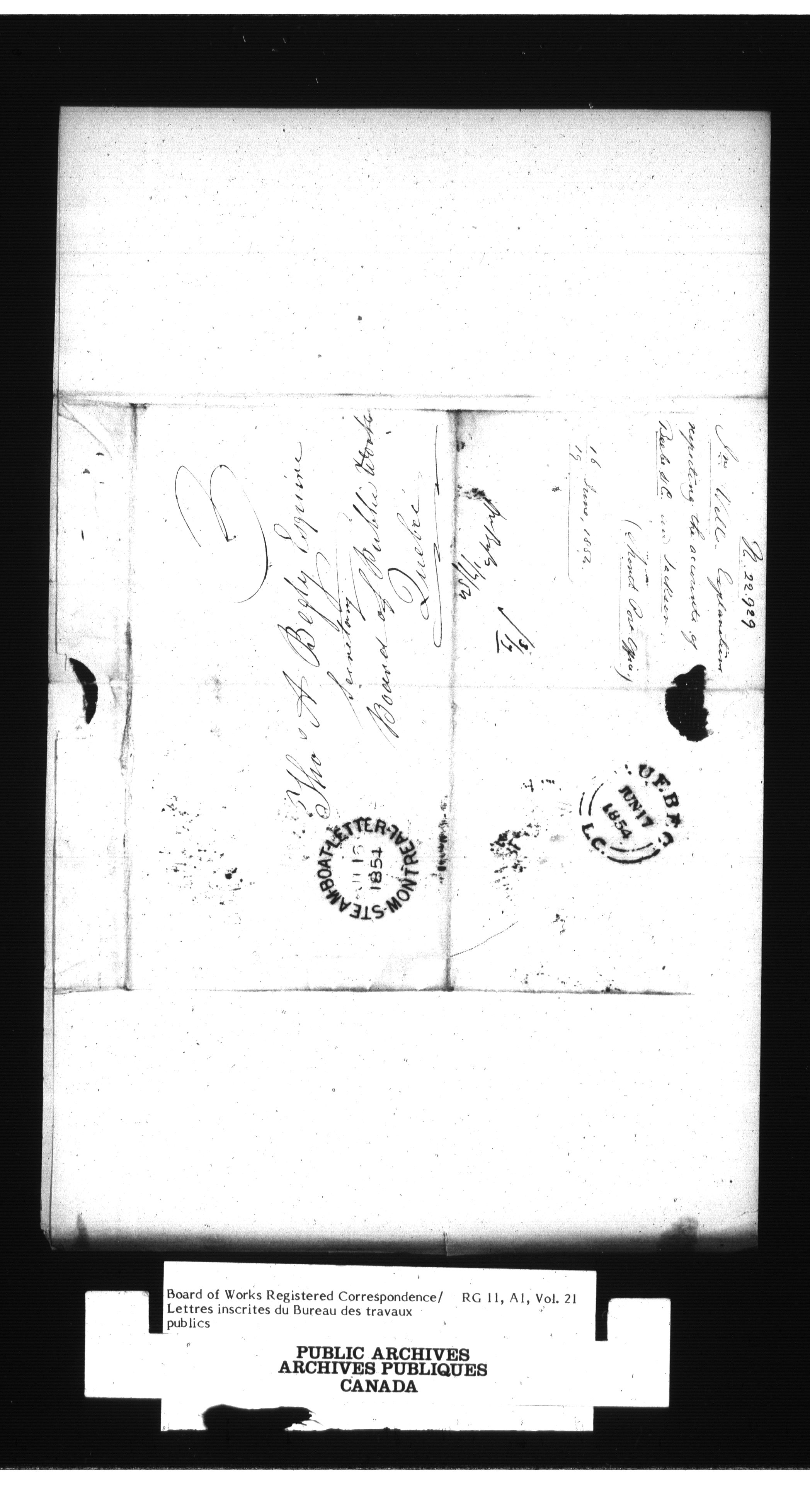 Department of Public Works, Board of Works records, official correspondence : Registered correspondence, 1842-1860 : T-1663