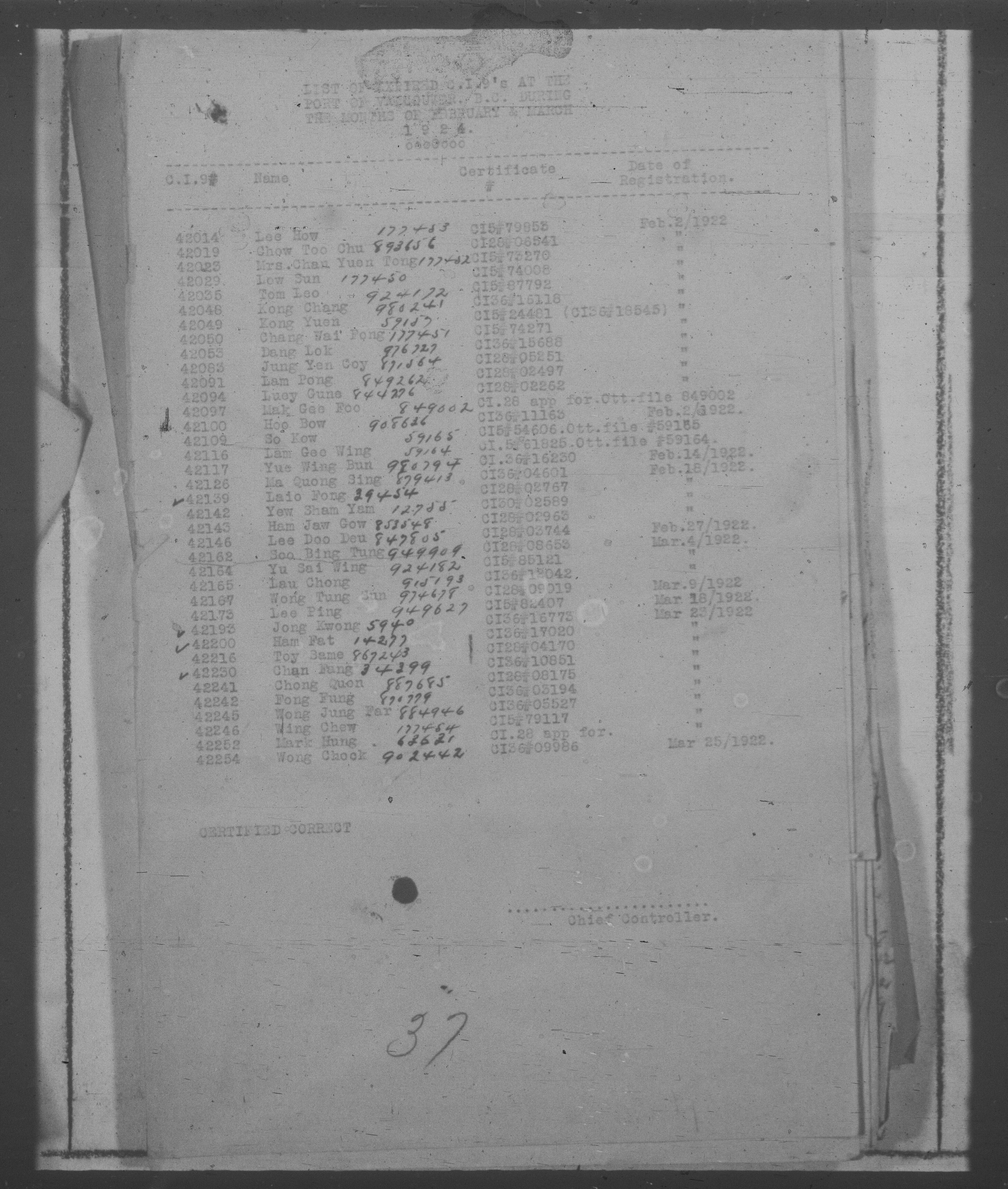 List of Chinese admitted at the Port of Vancouver under C.I. 9 certificates/records of returned C.I. 9