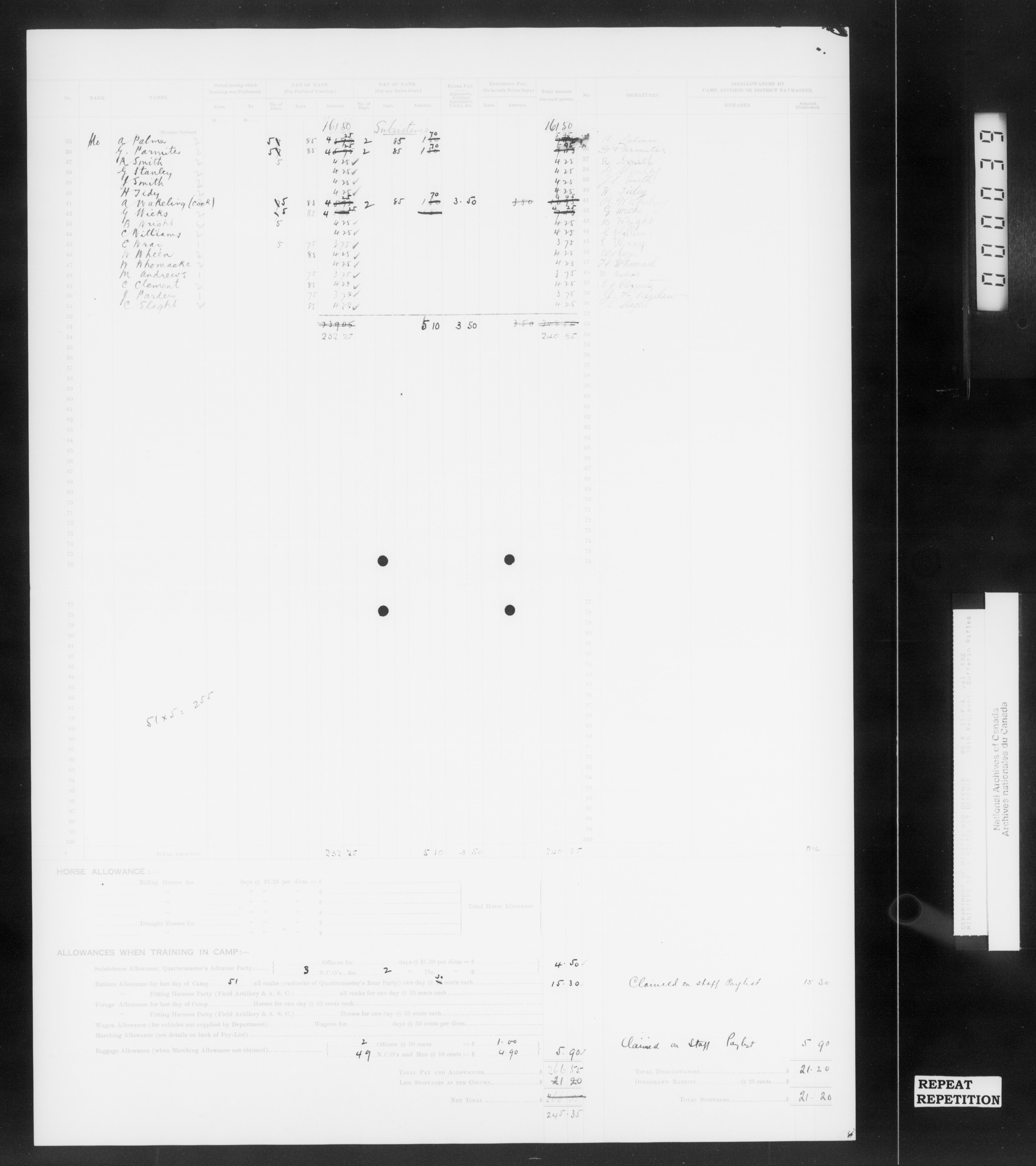 Militia and Defence : Nominal rolls and paylists for the Volunteer Militia : T-16673