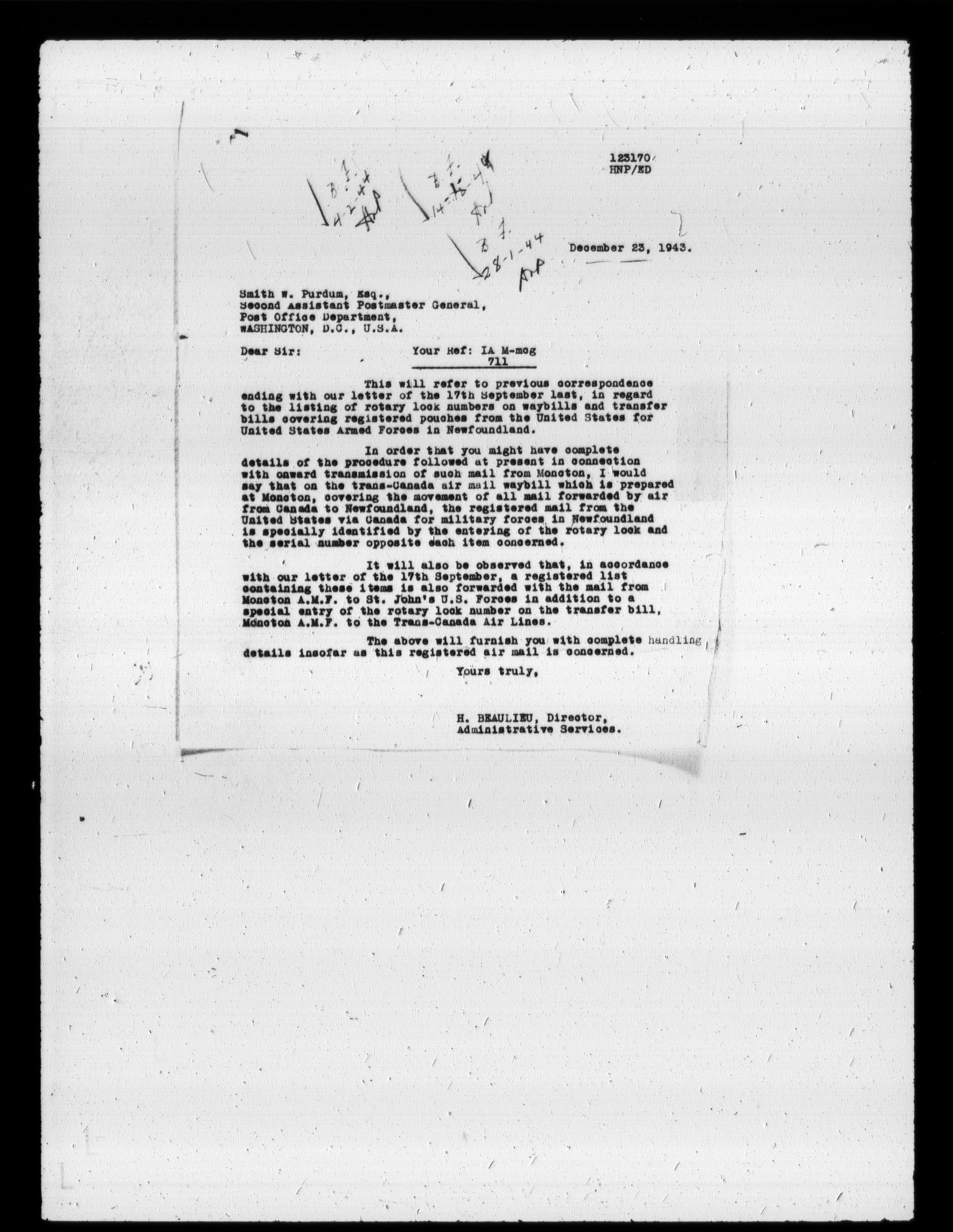 Post Office registry systems : Duplex numeric classification system : T-1674
