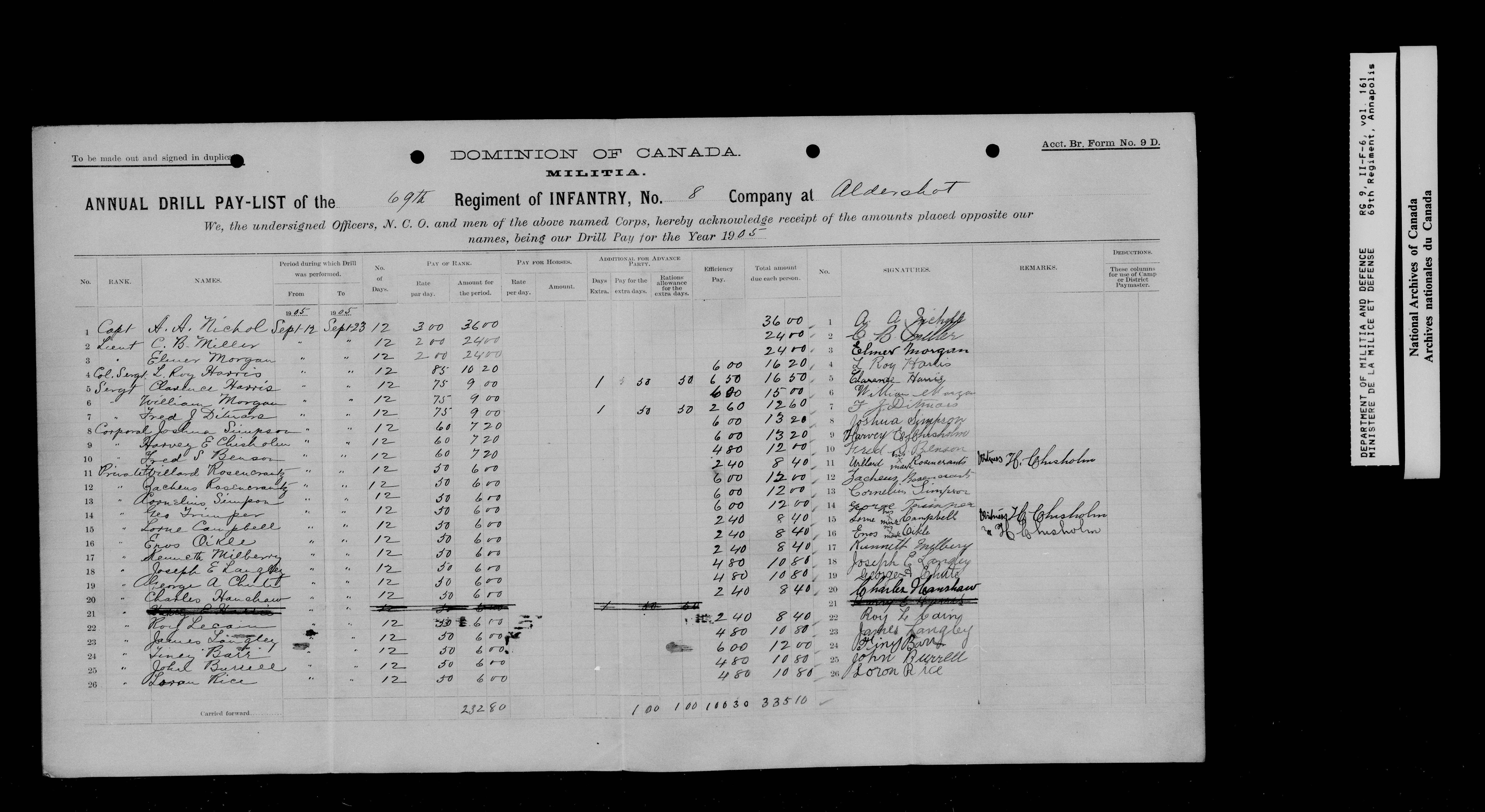 Nominal rolls and paylists for the Volunteer Militia 1855-1914 - T-16767