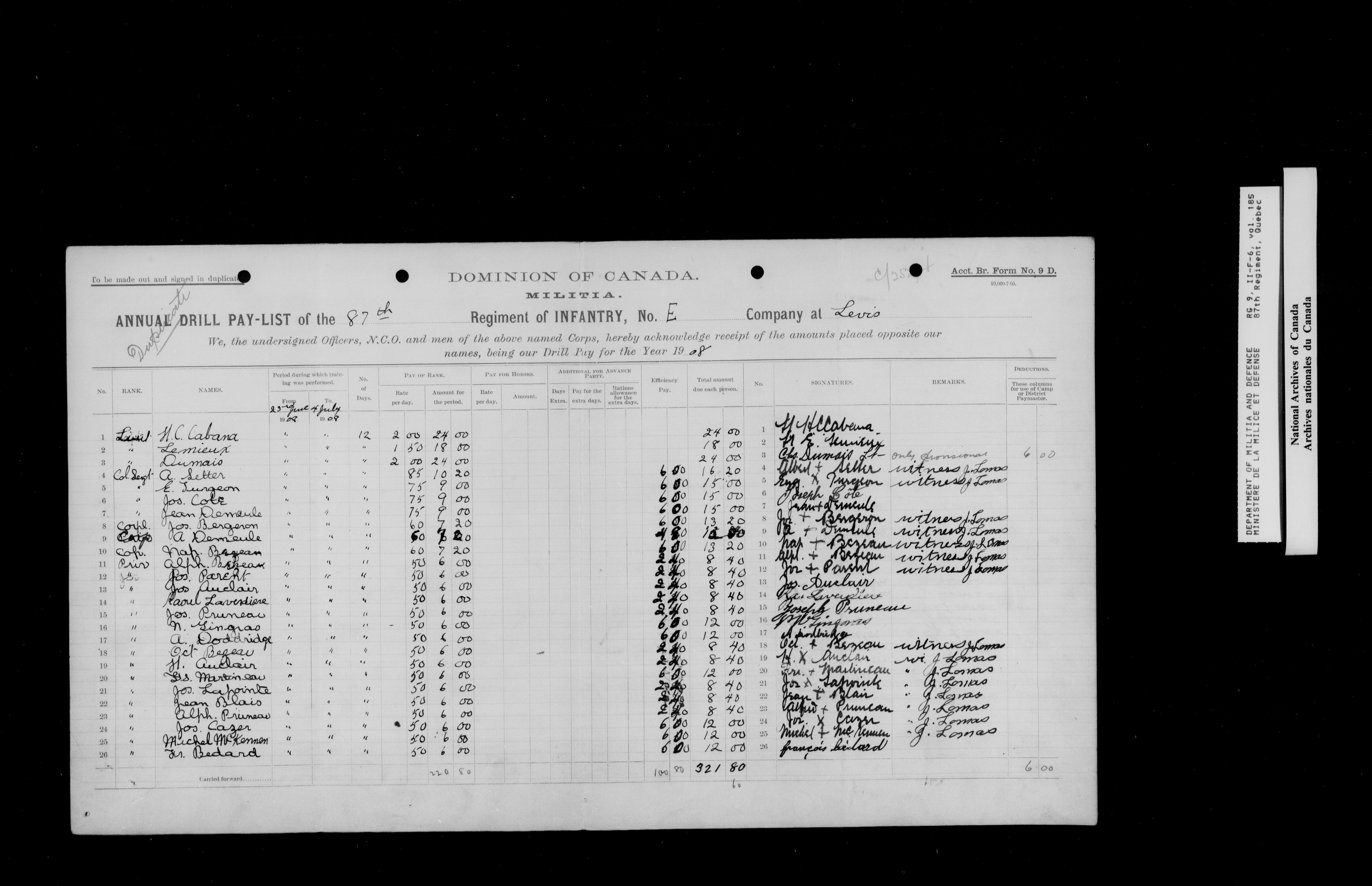 Nominal rolls and paylists for the Volunteer Militia 1855-1914 - 16784