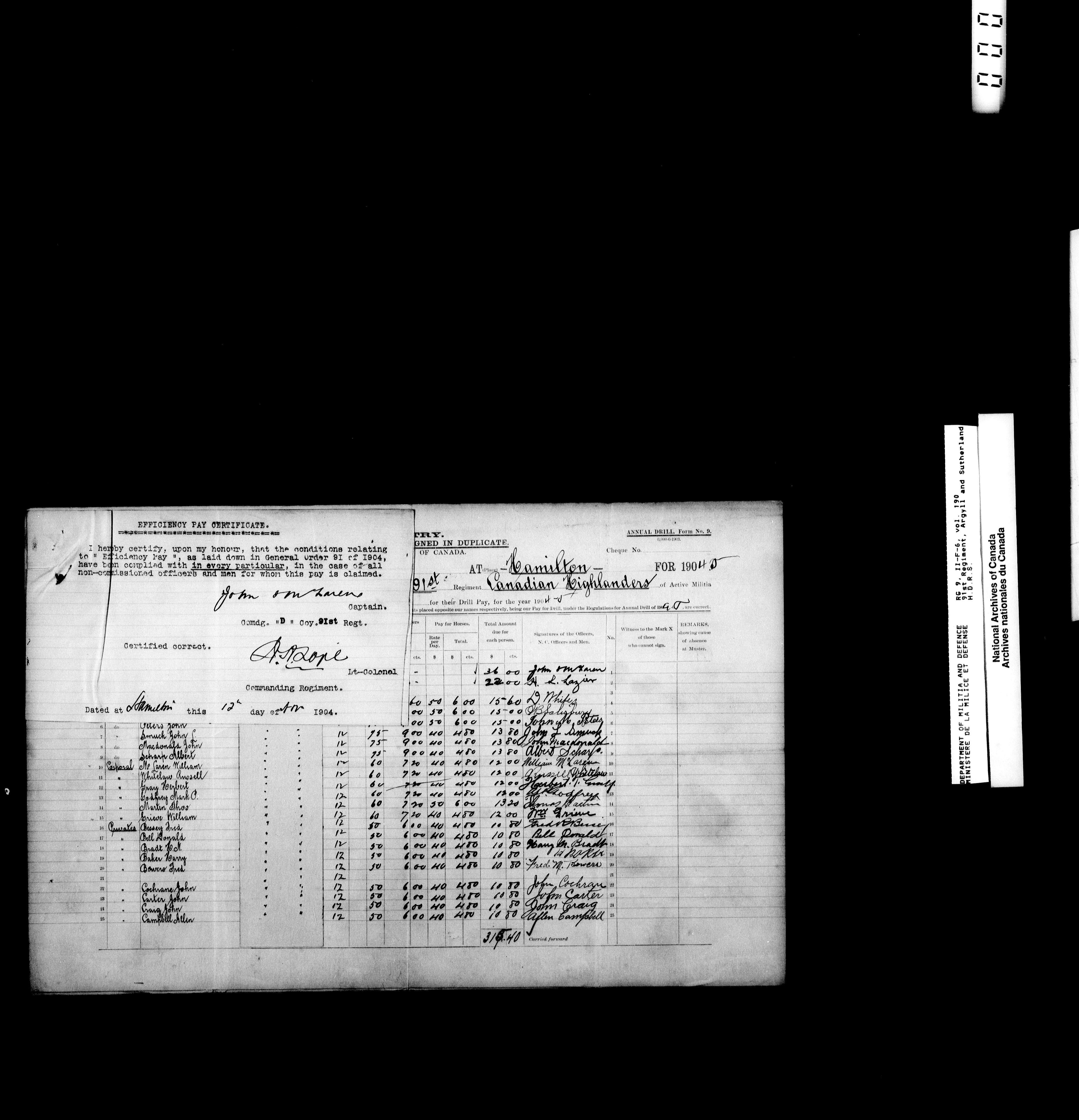 Nominal rolls and paylists for the Volunteer Militia, 1855-1914 - 16786