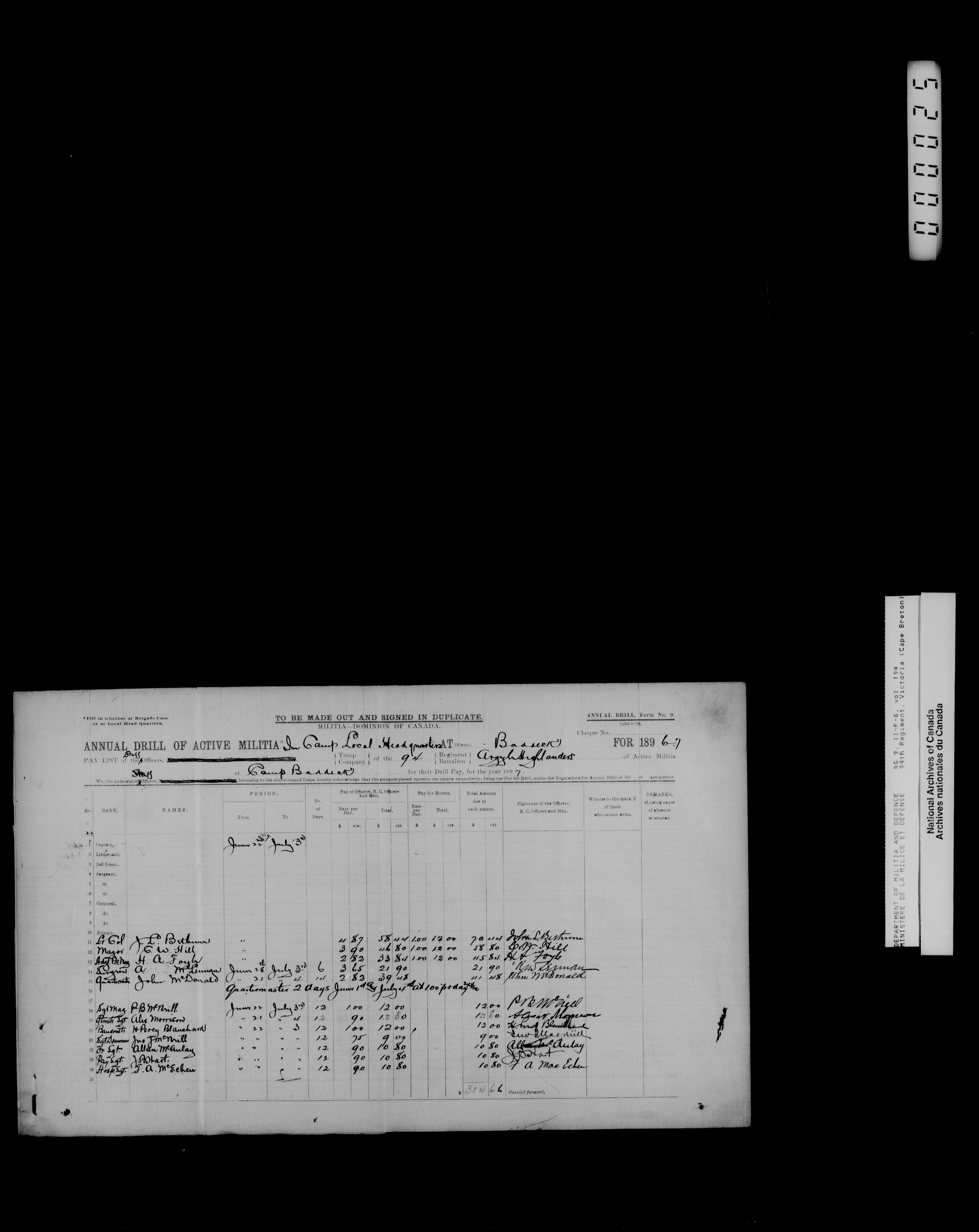 Nominal rolls and paylists for the Volunteer Militia (Vol. 194, 94th Regiment, Victoria (Cape Breton) to Vol. 196th, 97th Regiment, Algonquin Rifles) - 16789