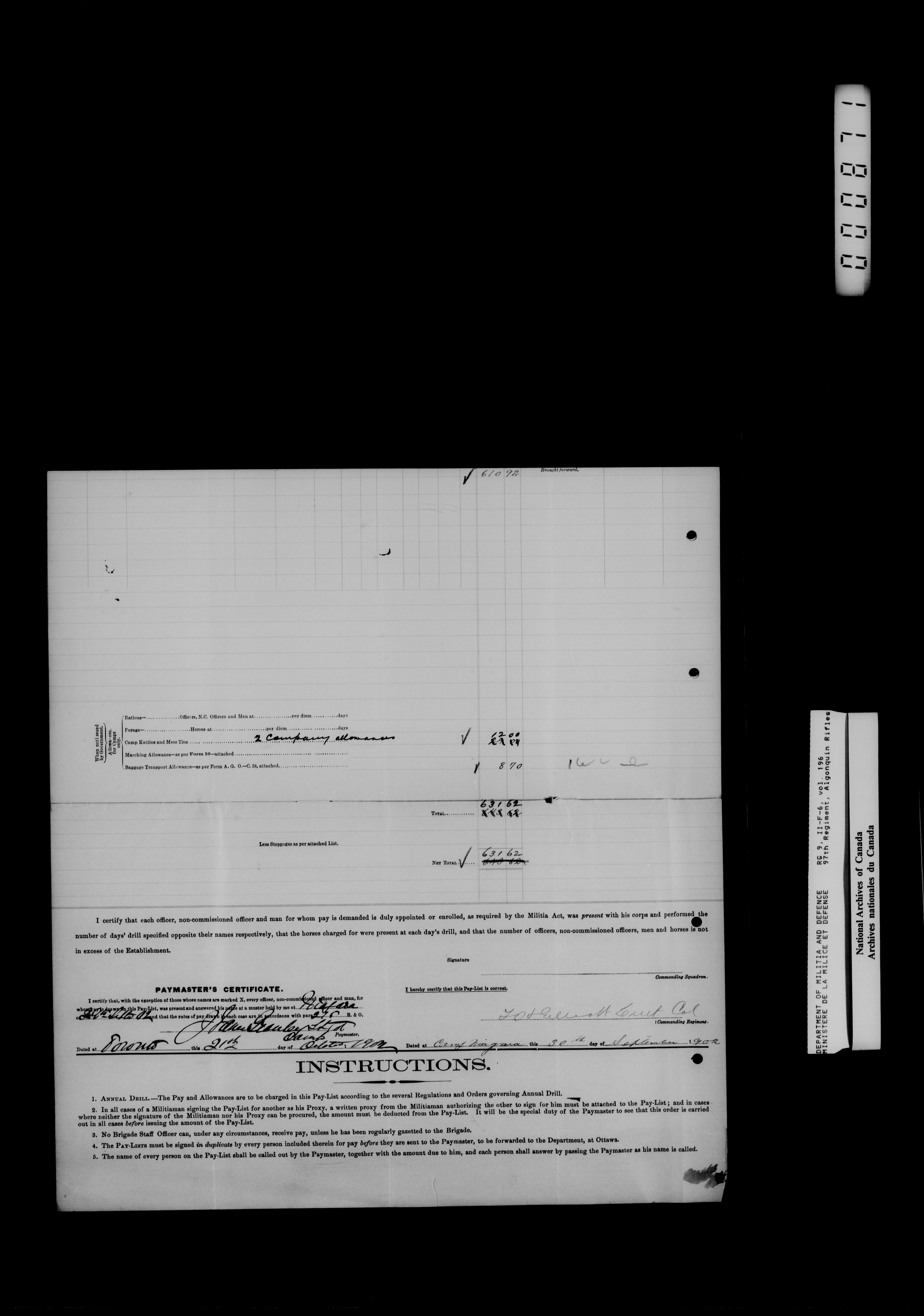 Nominal rolls and paylists for the Volunteer Militia (Vol. 194, 94th Regiment, Victoria (Cape Breton) to Vol. 196th, 97th Regiment, Algonquin Rifles) - 16789