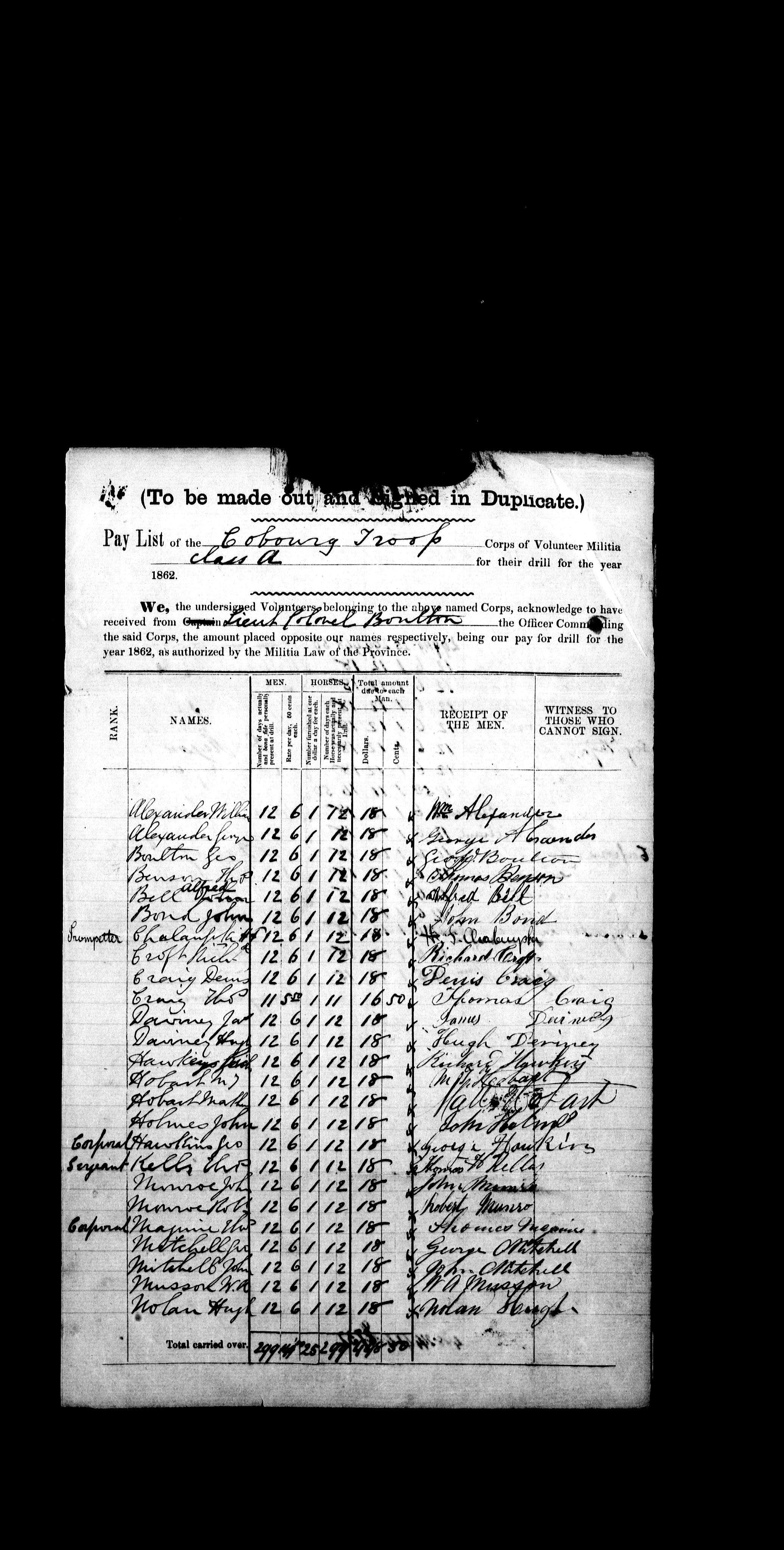 Nominal rolls and paylists for the Volunteer Militia - 16805