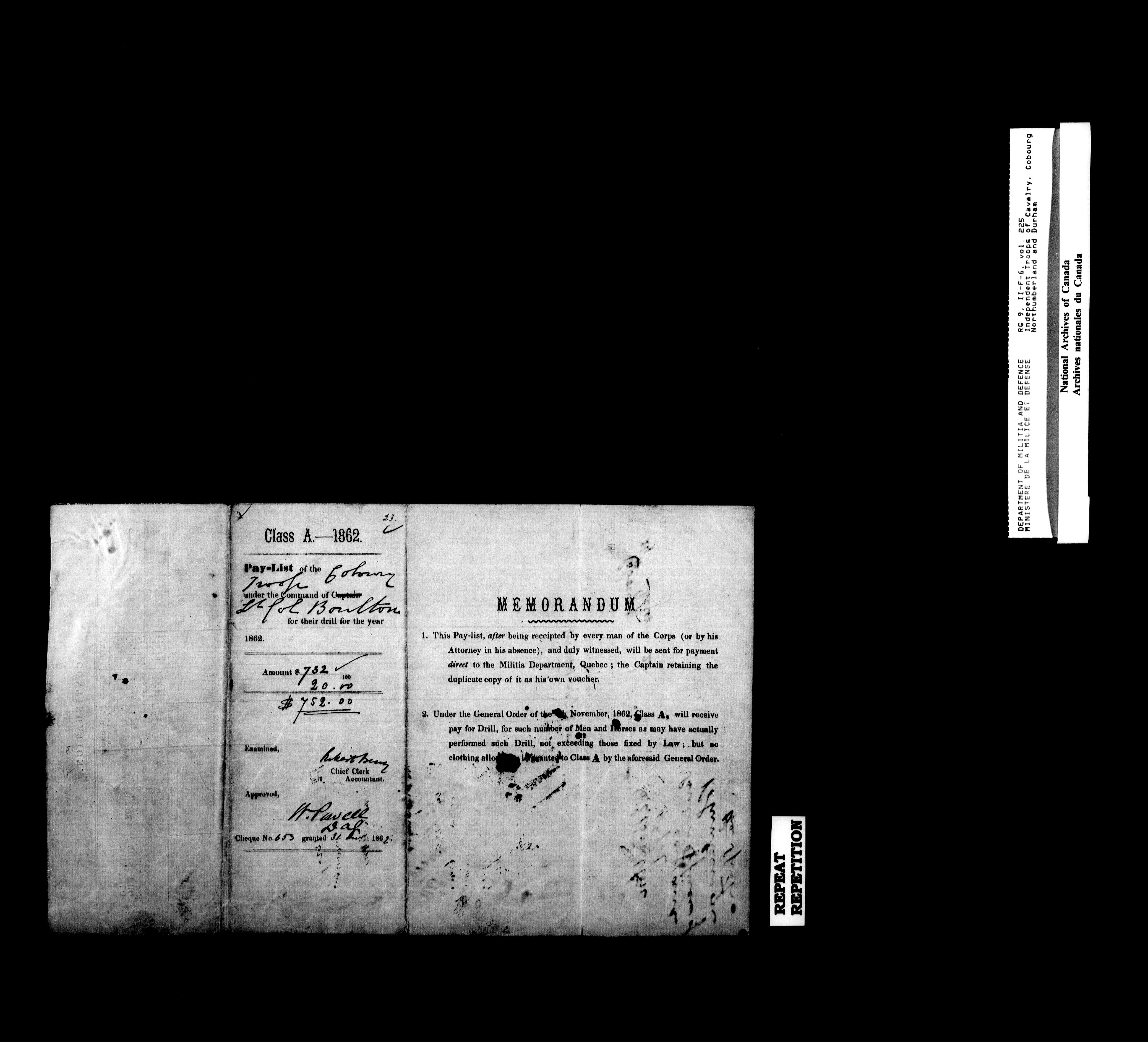 Nominal rolls and paylists for the Volunteer Militia - 16805