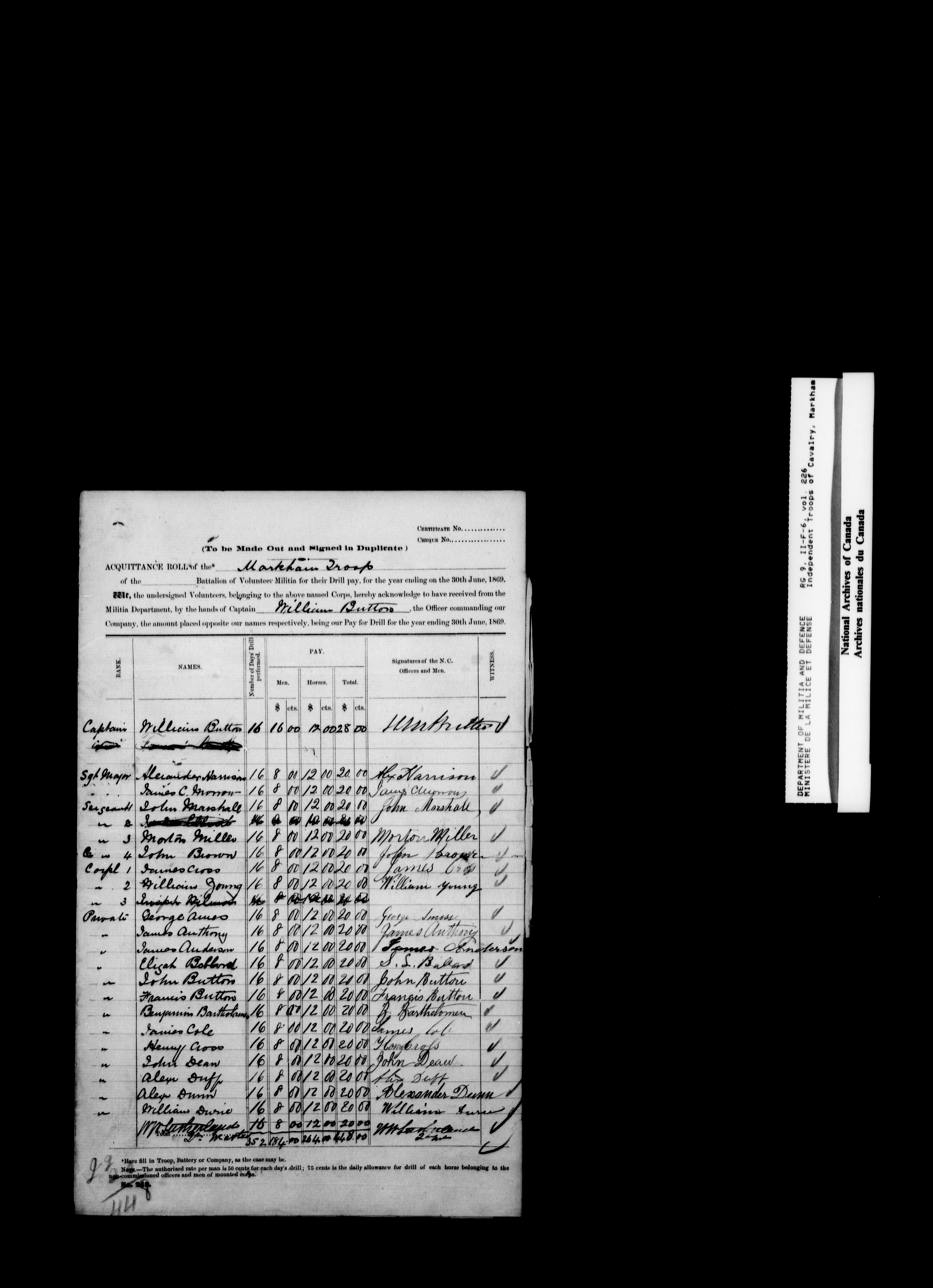 Militia and Defence : Nominal rolls and paylists for the Volunteer Militia : T-16806
