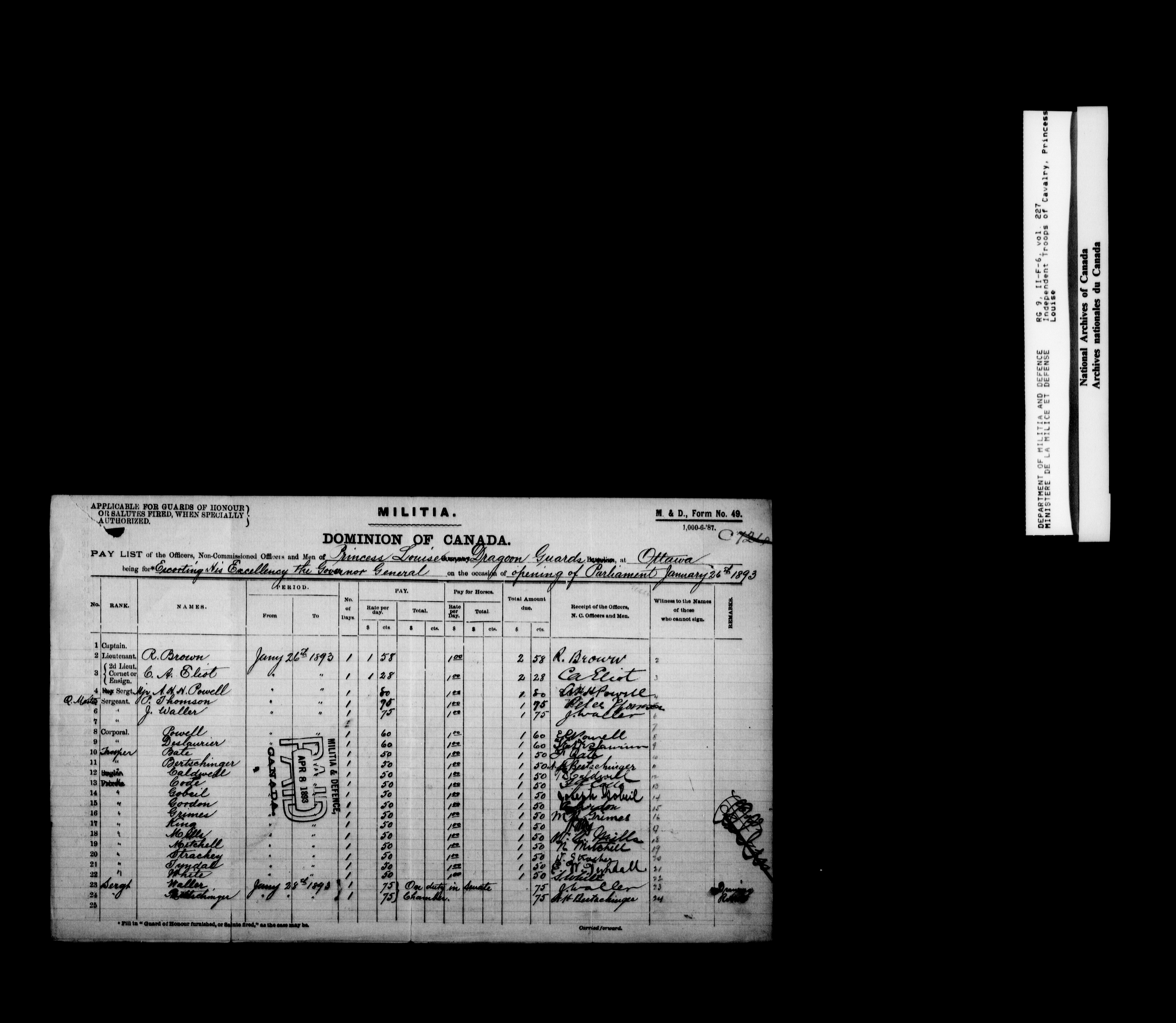 Nominal rolls and paylists for the Volunteer Militia - 16807