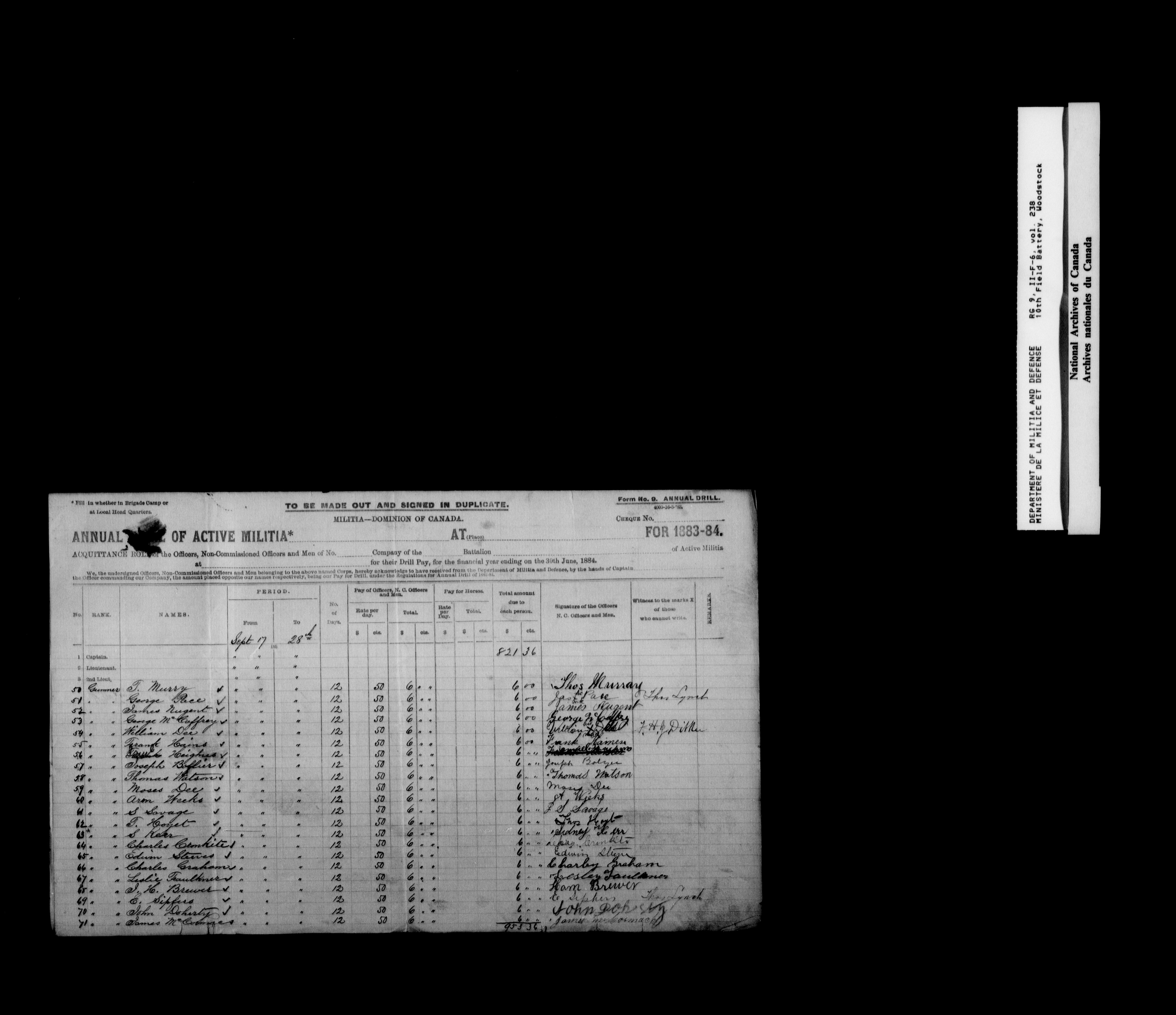 Militia and Defence : Nominal rolls and paylists for the Volunteer Militia : T-16814