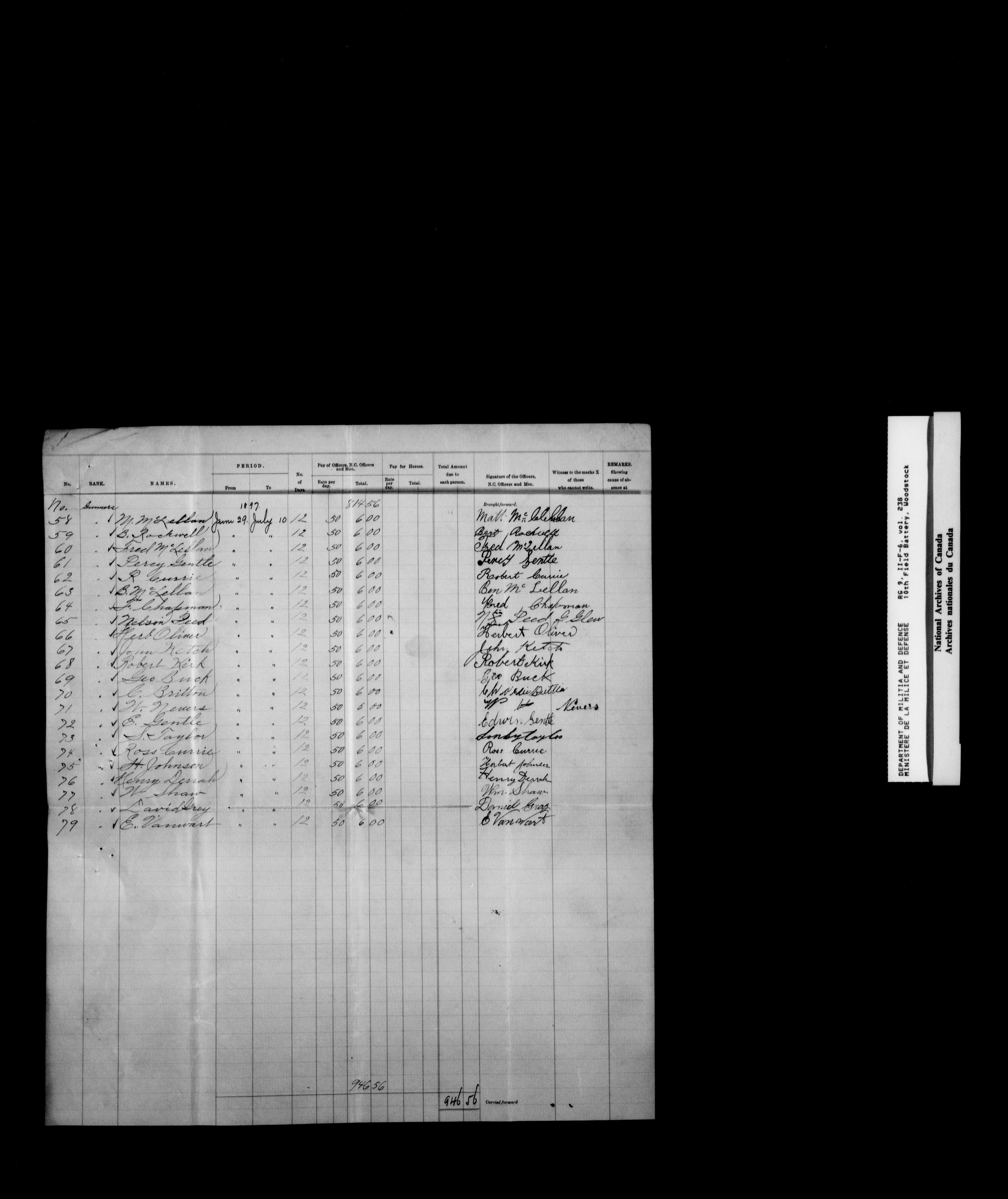 Nominal rolls and paylists for the Volunteer Militia - 16815