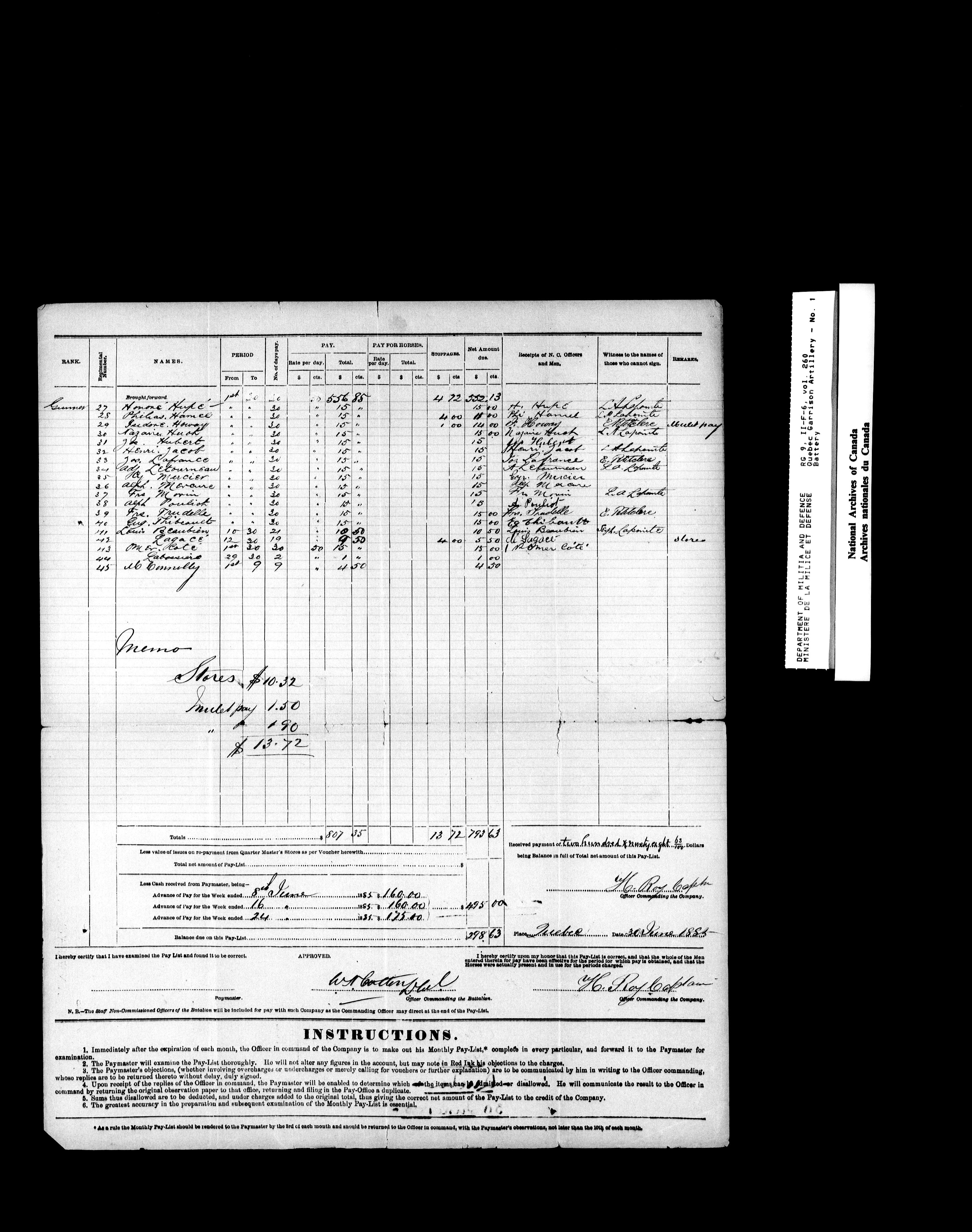 Nominal rolls and paylists for the Volunteer Militia, 1855-1914 - 16829