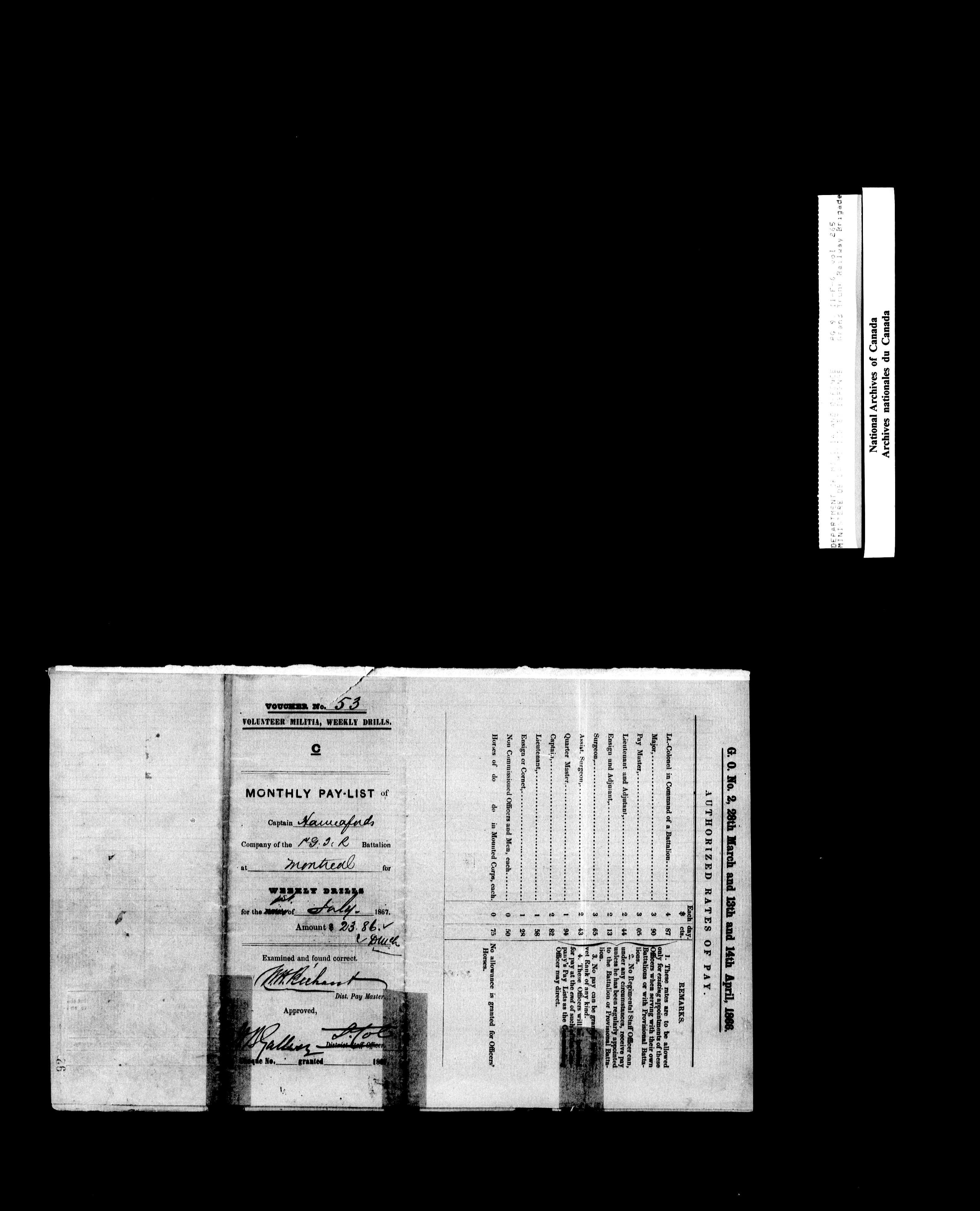 Nominal rolls and paylists for the Volunteer Militia, 1855-1914 - 16833