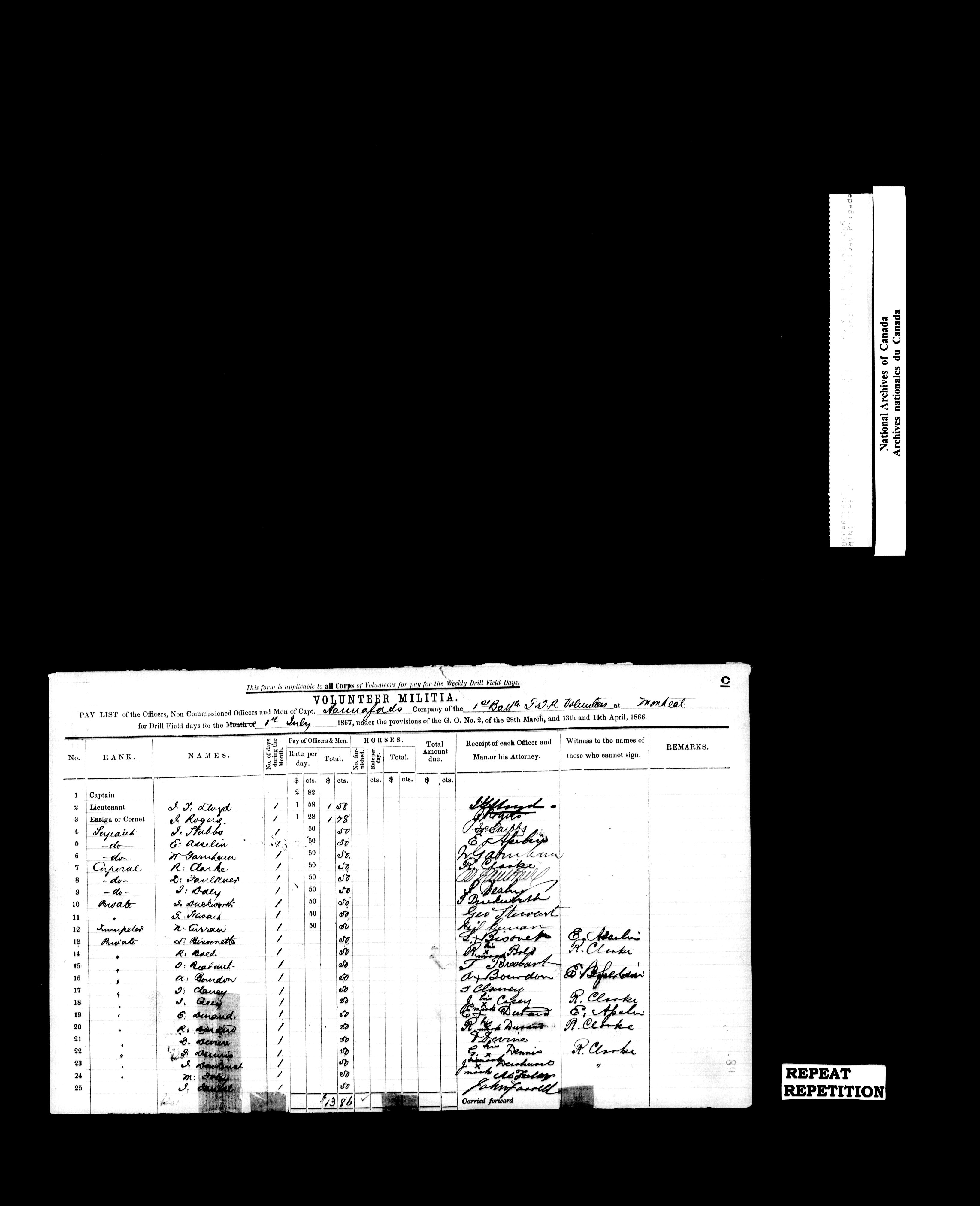 Nominal rolls and paylists for the Volunteer Militia, 1855-1914 - 16833