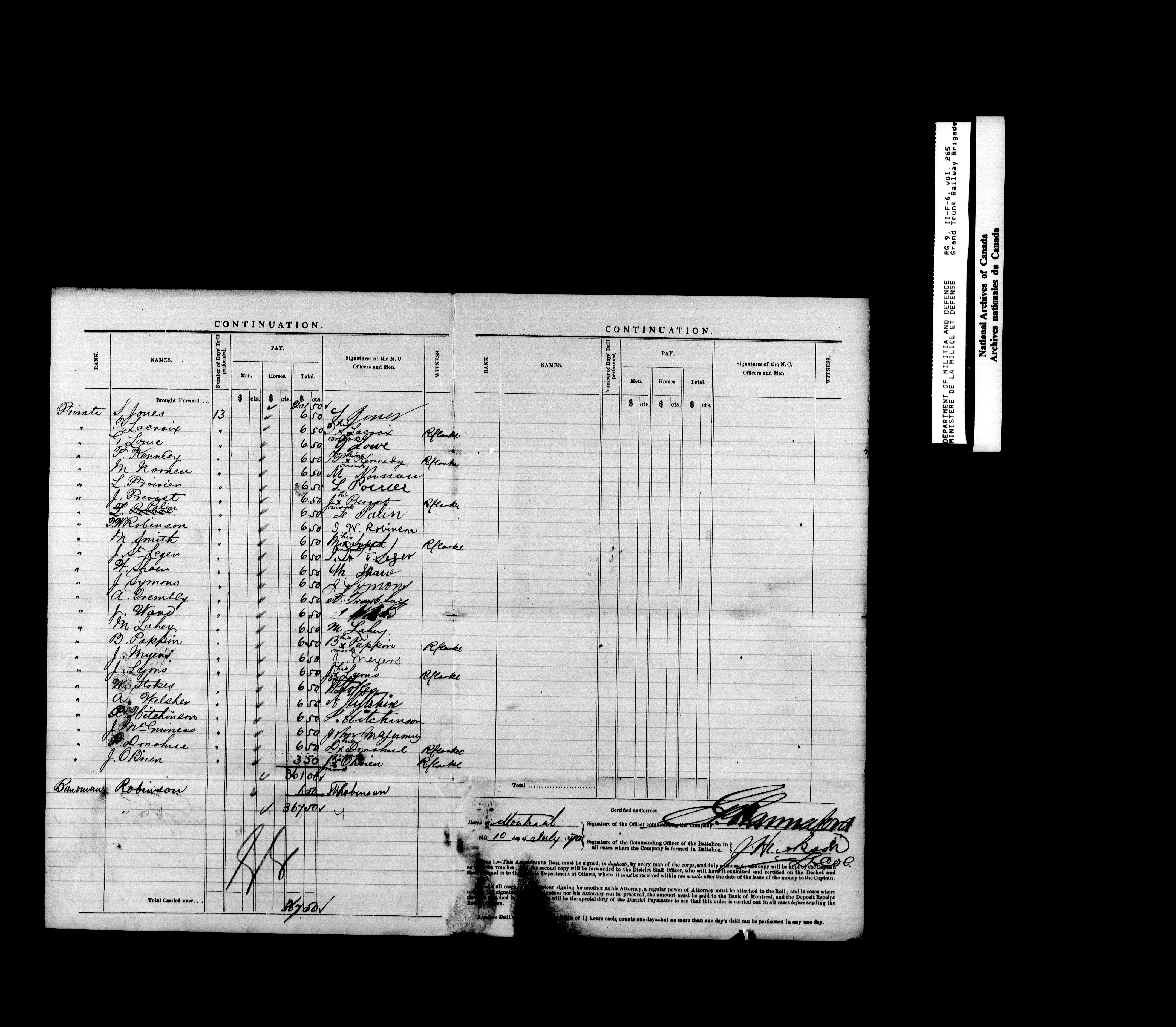 Nominal rolls and paylists for the Volunteer Militia, 1855-1914 - 16833