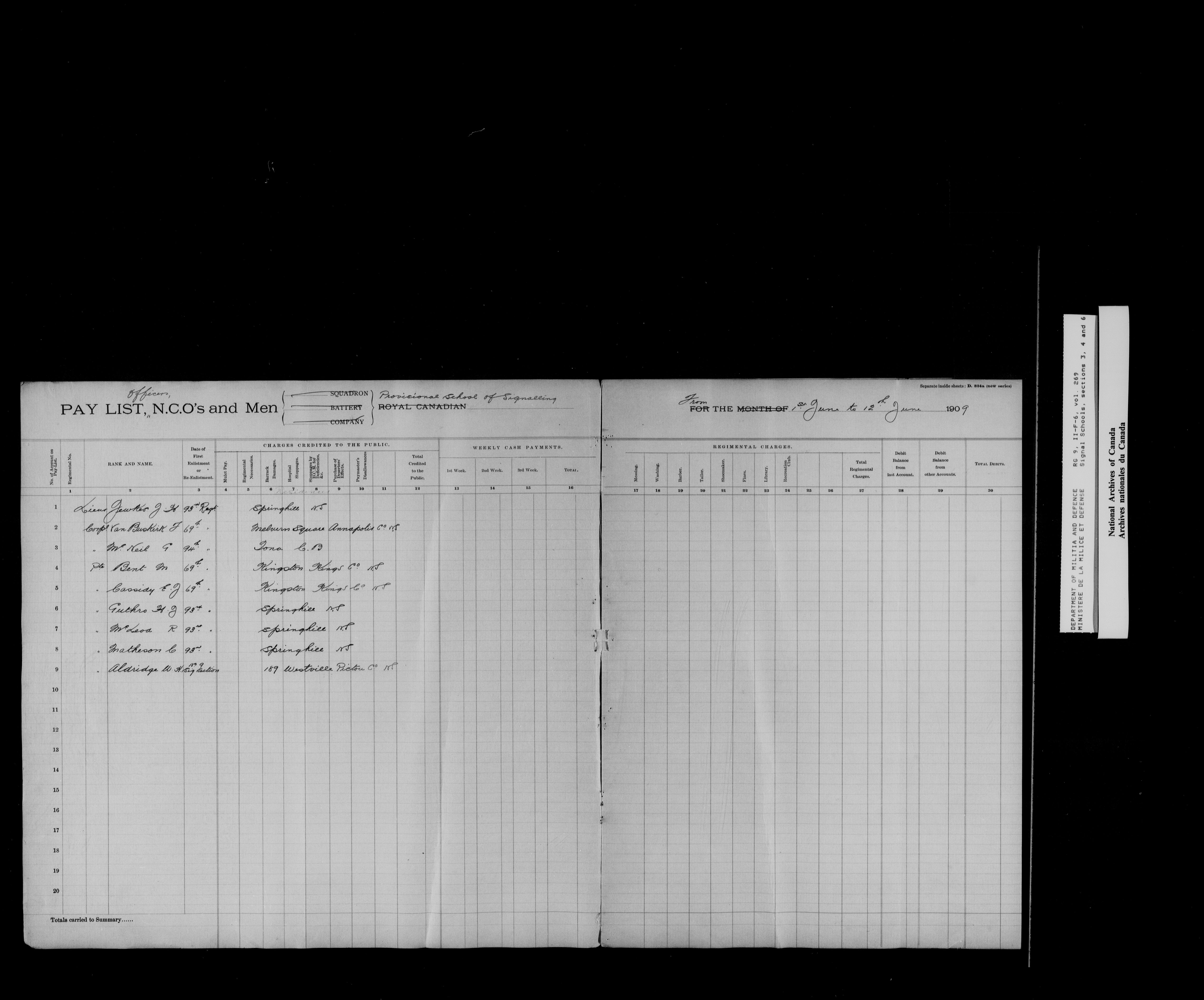 Militia and Defence : Nominal rolls and paylists for the Volunteer Militia - 16834