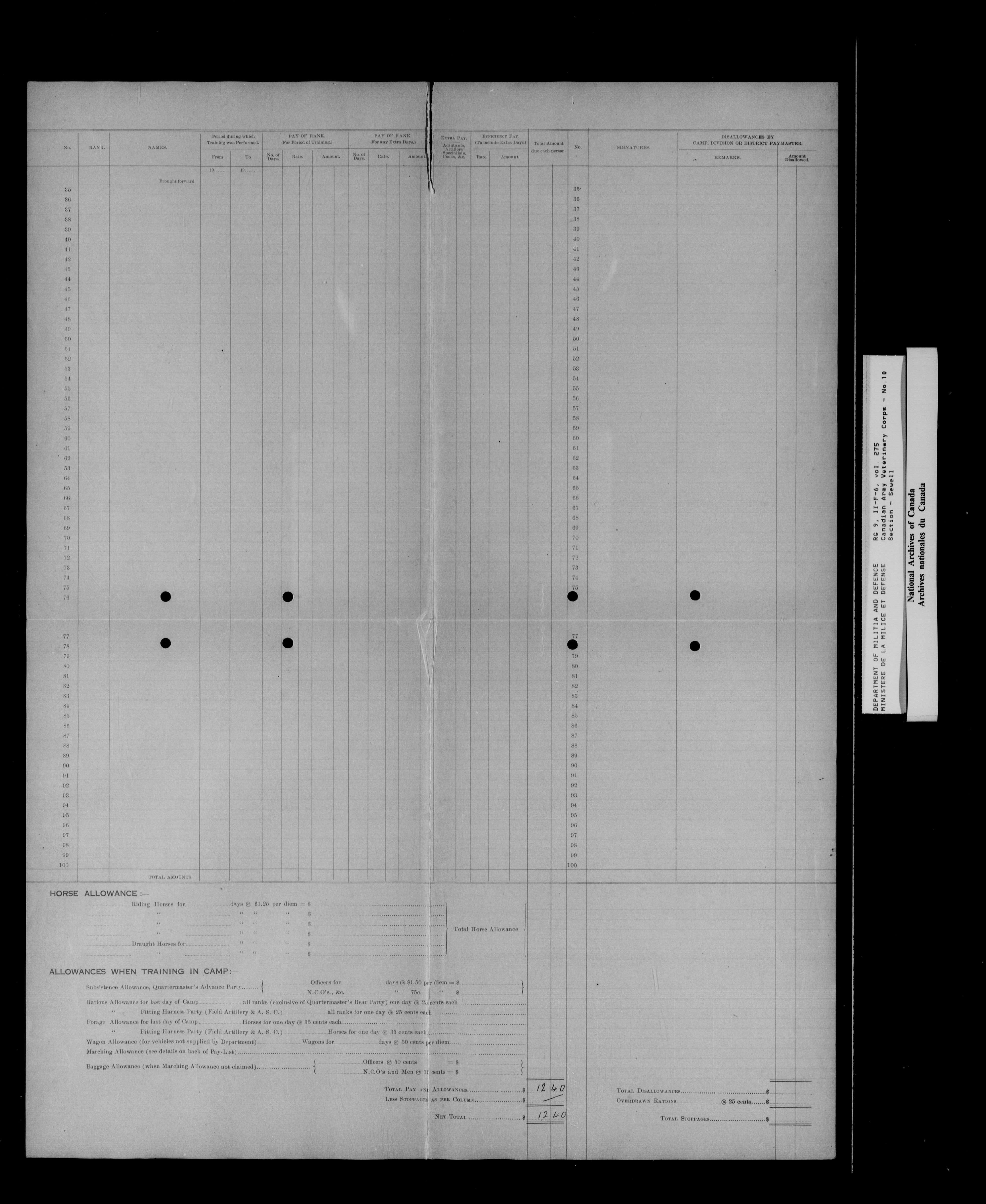 Militia and Defence : Nominal rolls and paylists for the Volunteer Militia - 16837