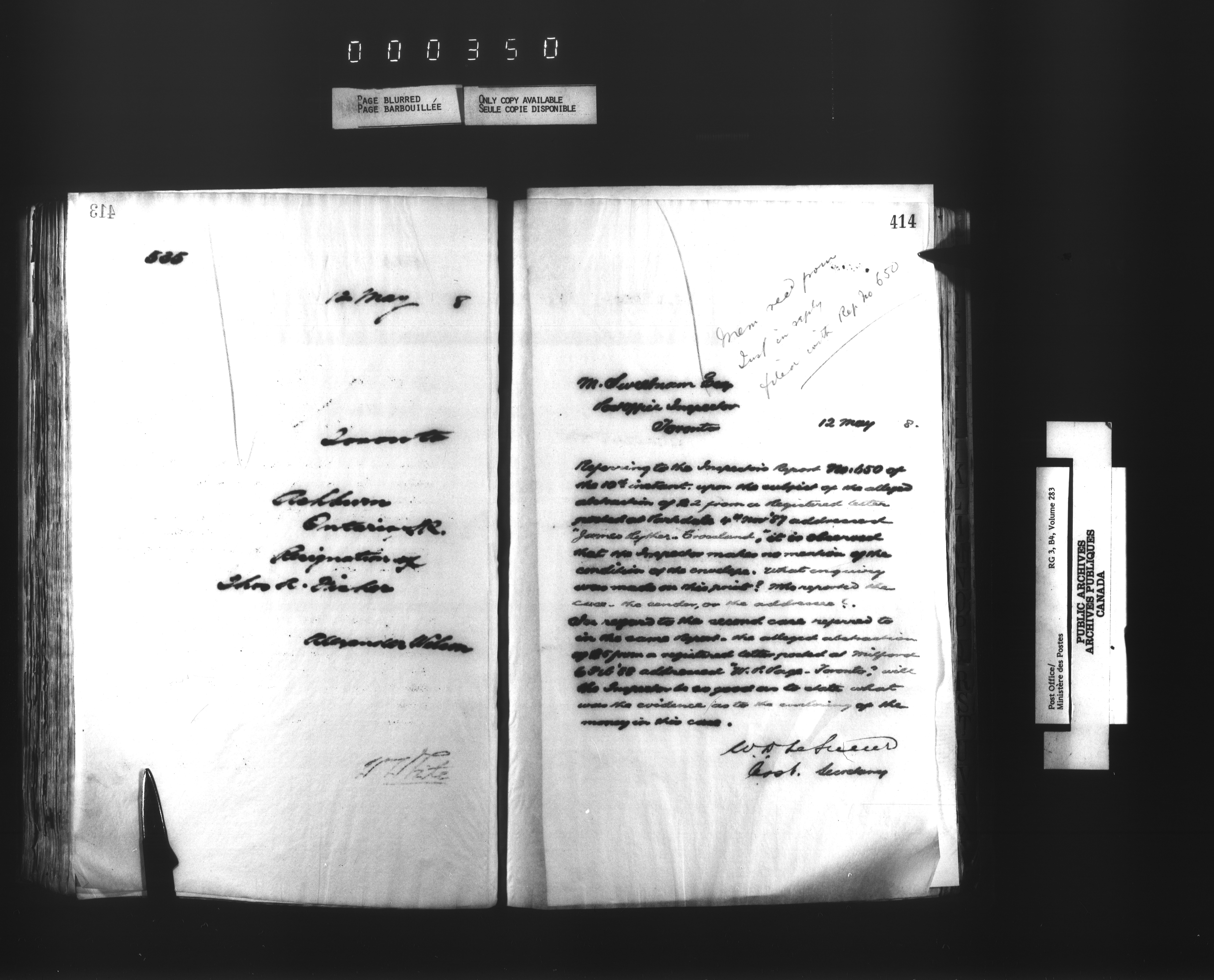 Deputy Postmaster General : correspondence addressed to the Post Office Inspectors, 1851-1902 - 1698