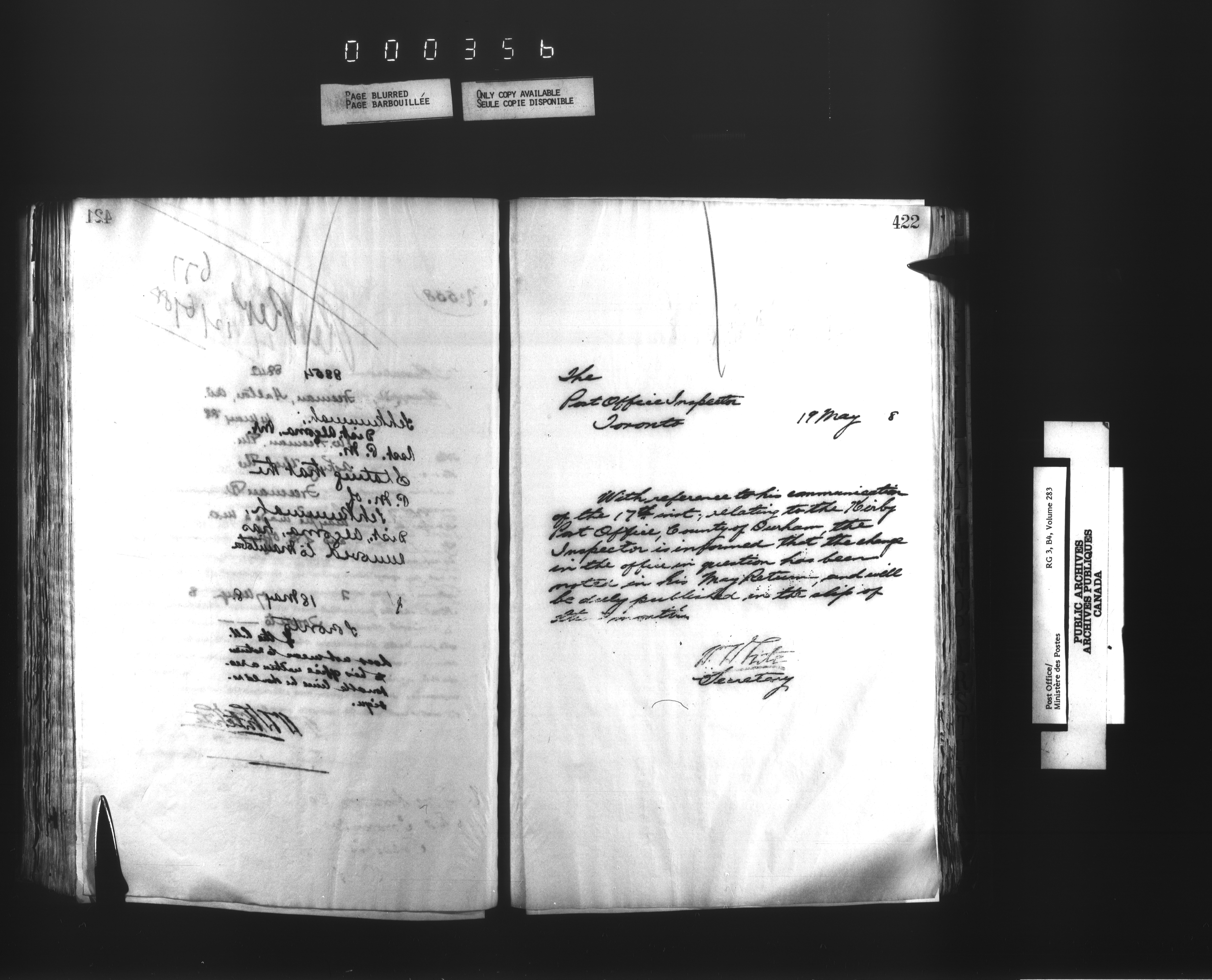 Deputy Postmaster General : correspondence addressed to the Post Office Inspectors, 1851-1902 : T-1698